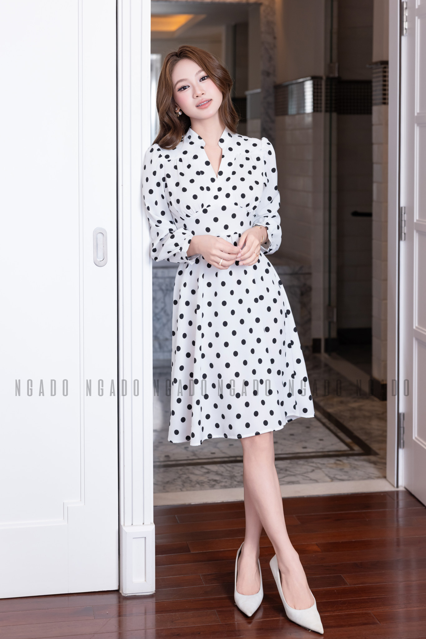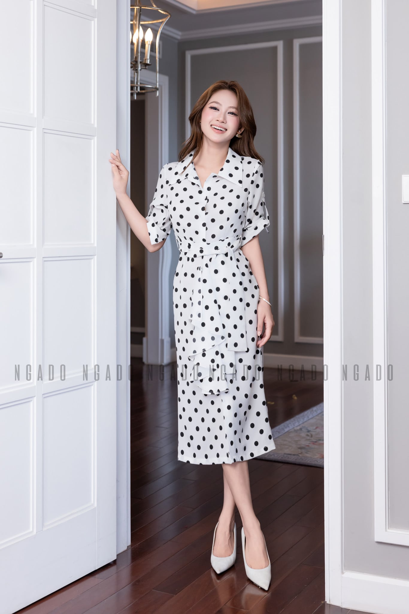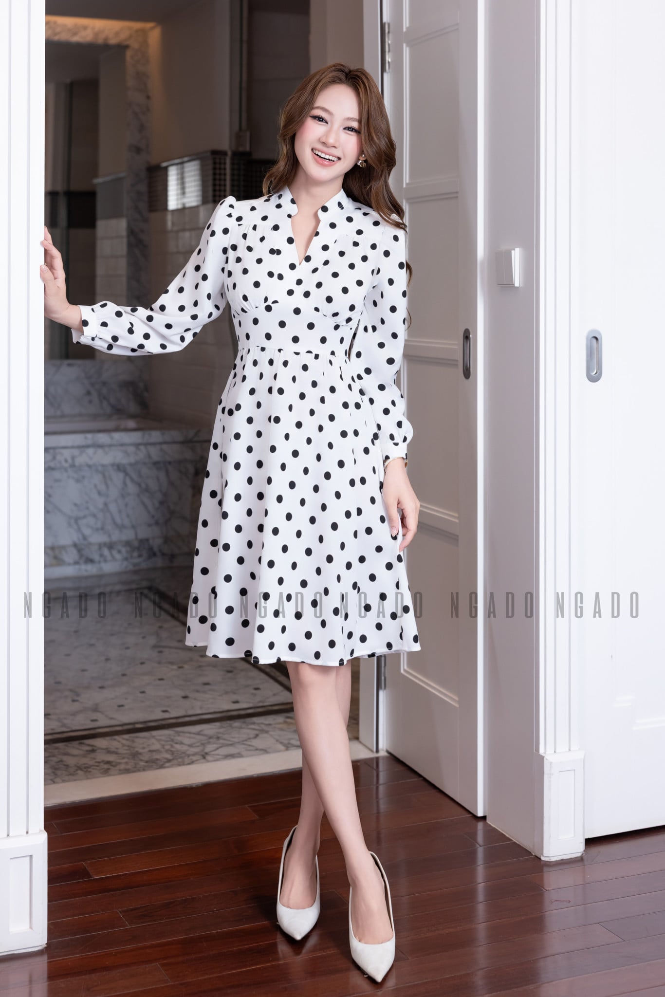 Đừng nghĩ chấm bi chỉ hợp phong cách cổ điển! Với những thiết kế tinh tế từ NGADO, họa tiết chấm bi trở nên thời thượng hơn bao giờ hết. Một chiếc đầm trắng chấm bi đen hoặc nền kem chấm bi nâu sẽ khiến nàng trở nên nổi bật nhưng vẫn rất thanh lịch.