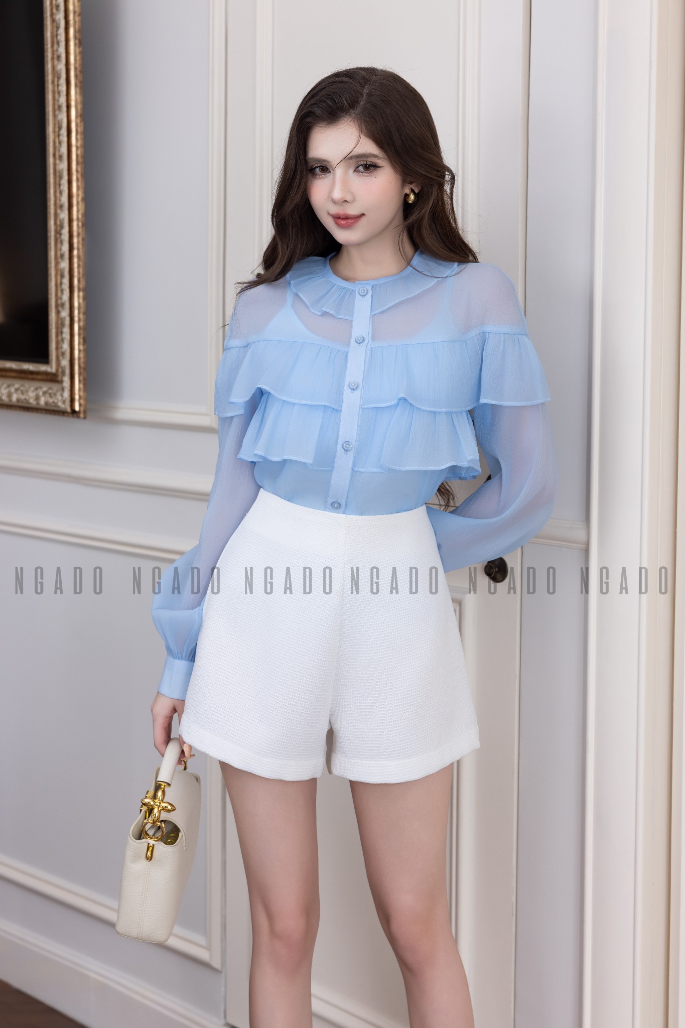 Đến cuối tuần, bạn hoàn toàn có thể “giải phóng” bản thân bằng sự kết hợp trẻ trung: áo voan tơ + quần short. Đây là outfit hoàn hảo cho những buổi cà phê cùng bạn bè, dạo phố hay picnic ngoài trời. Quần short jeans hoặc short vải cạp cao khi đi cùng áo voan tơ nhẹ nhàng sẽ mang lại sự cân bằng giữa năng động và nữ tính. Kết hợp thêm sandal hoặc sneaker trắng, nàng đã có set đồ “ăn ảnh” cho mọi bức hình check-in.