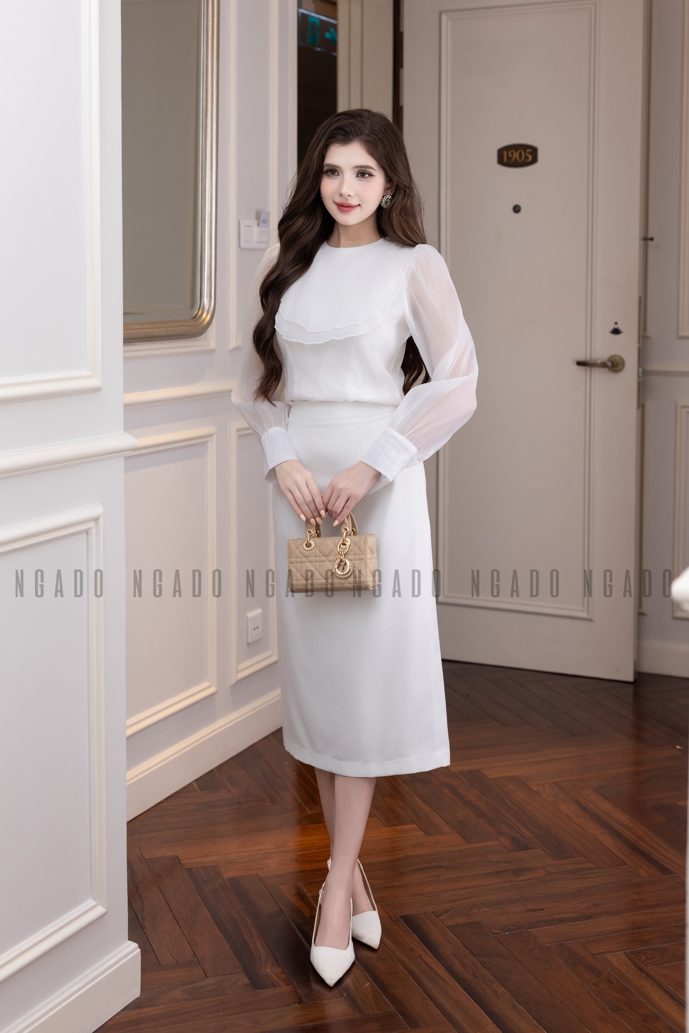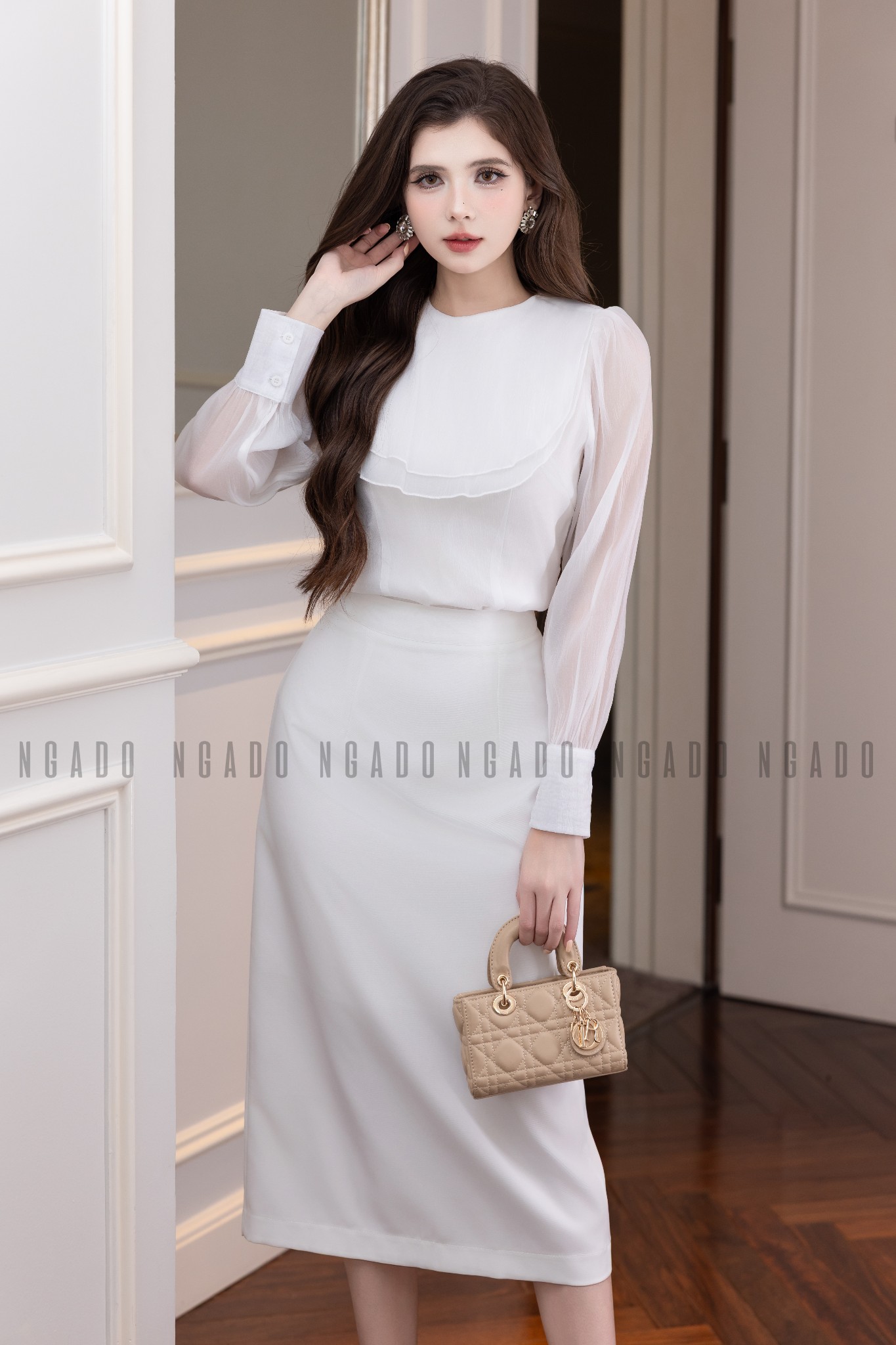 Áo voan tơ phối cùng váy mang lại vẻ đẹp hiện đại, phóng khoáng. Đây là lựa chọn lý tưởng cho những ngày bạn muốn thoải mái mà vẫn lịch sự. Voan tơ với chi tiết tay bồng nhẹ hay cổ nơ sẽ tạo điểm nhấn tinh tế, khi mix cùng quần dài sẽ rất hợp vibe văn phòng. Chỉ cần thêm khuyên tai nhỏ và một đôi giày block heels, bạn đã sẵn sàng bước vào ngày mới đầy năng lượng.