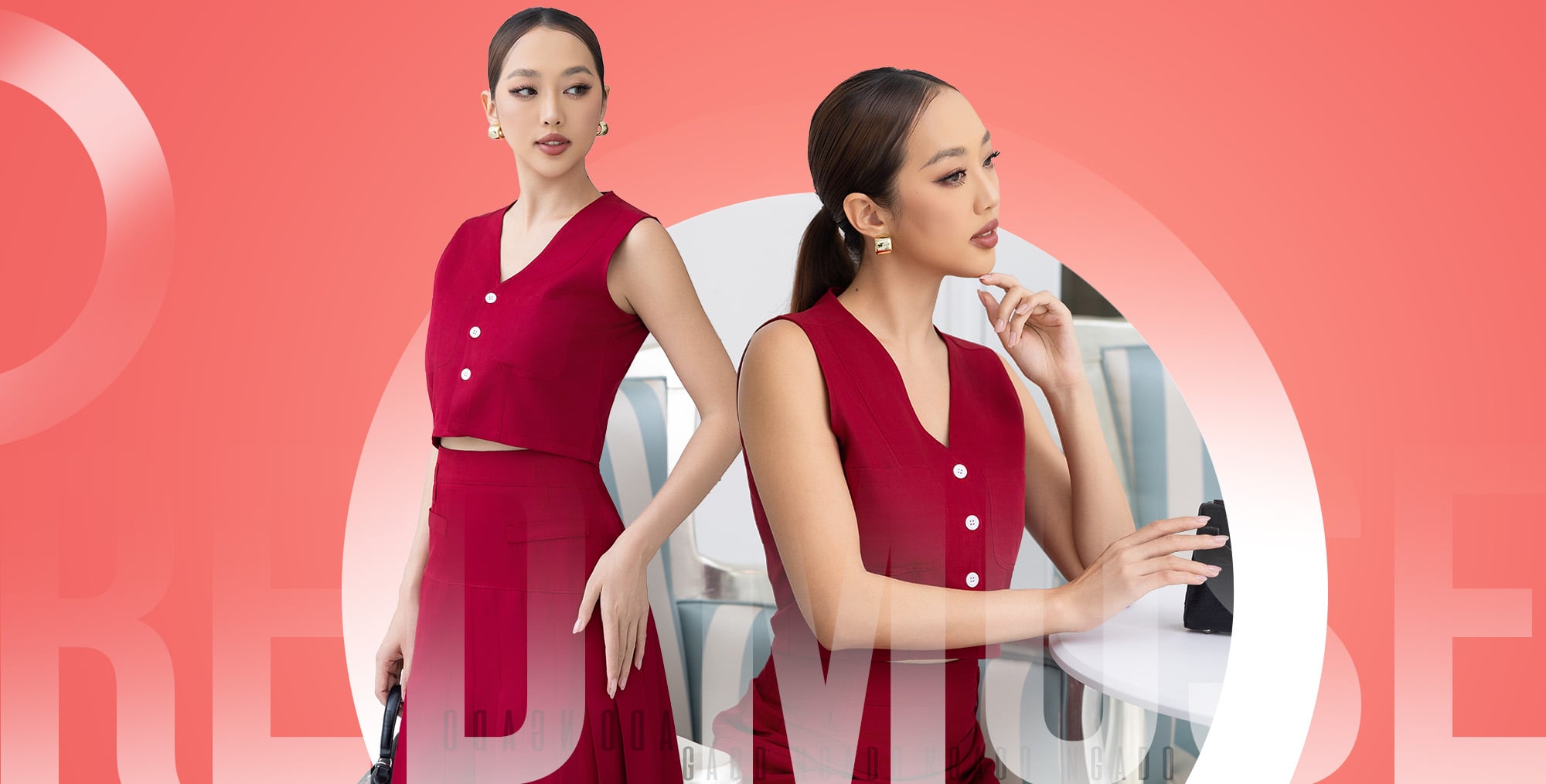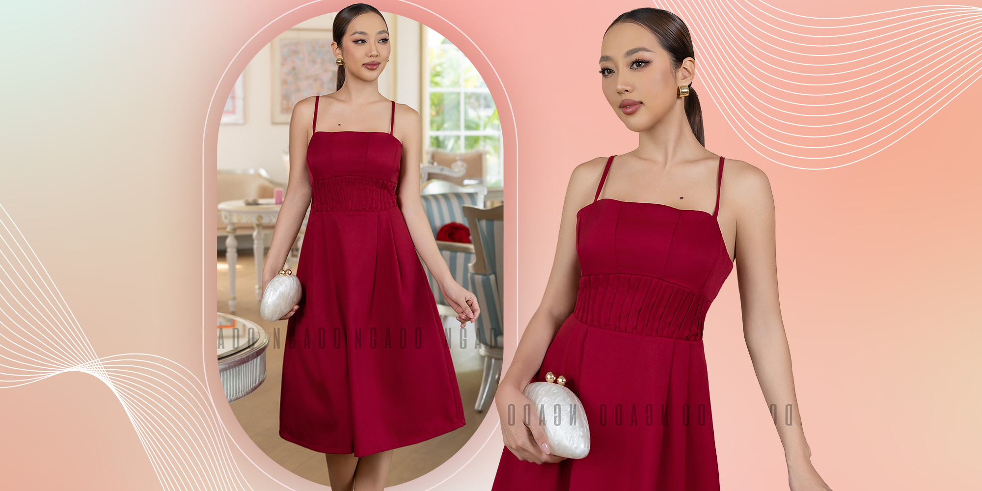 Đầm đỏ sát nách cổ vest [TÂM x ND]