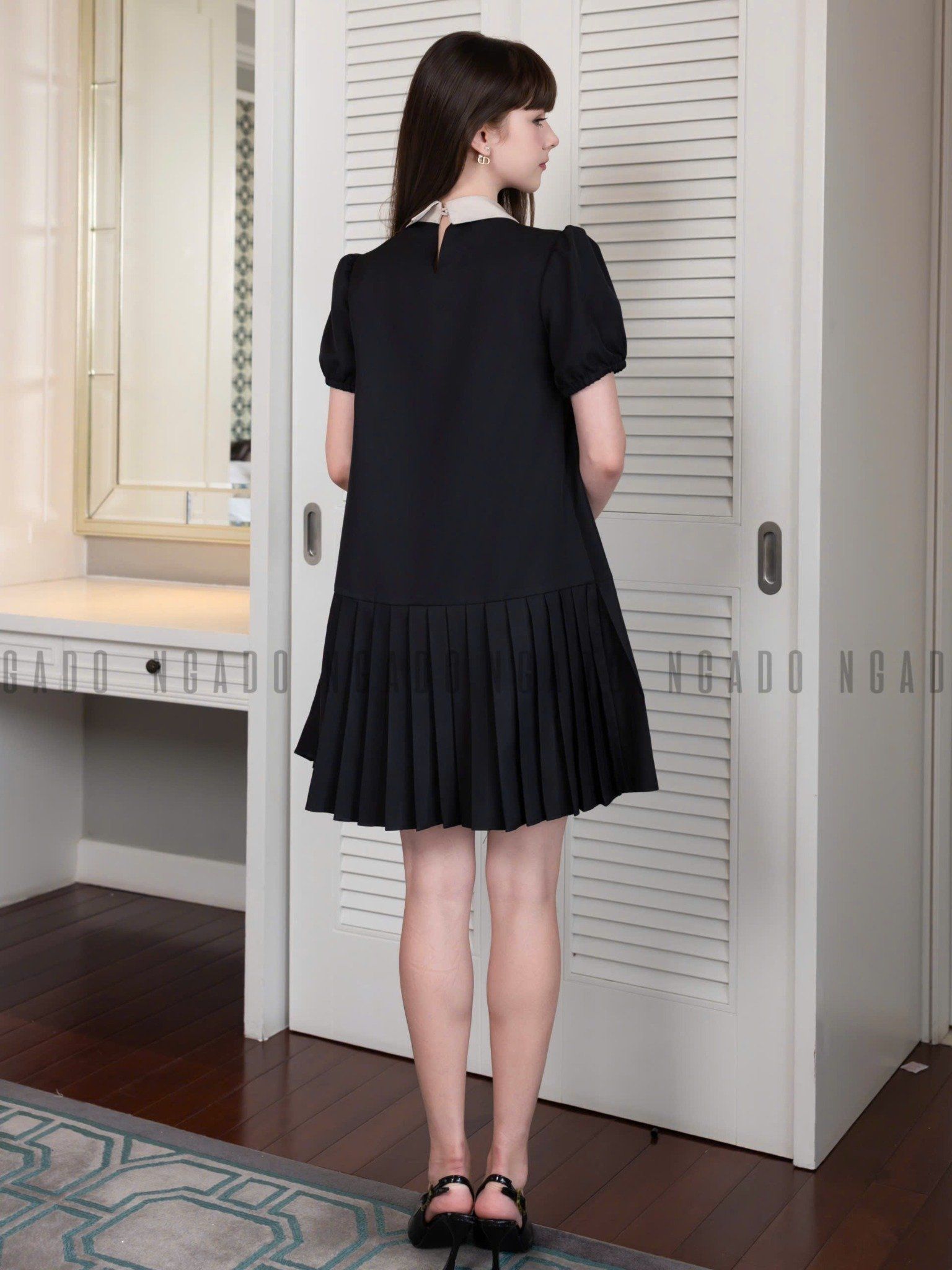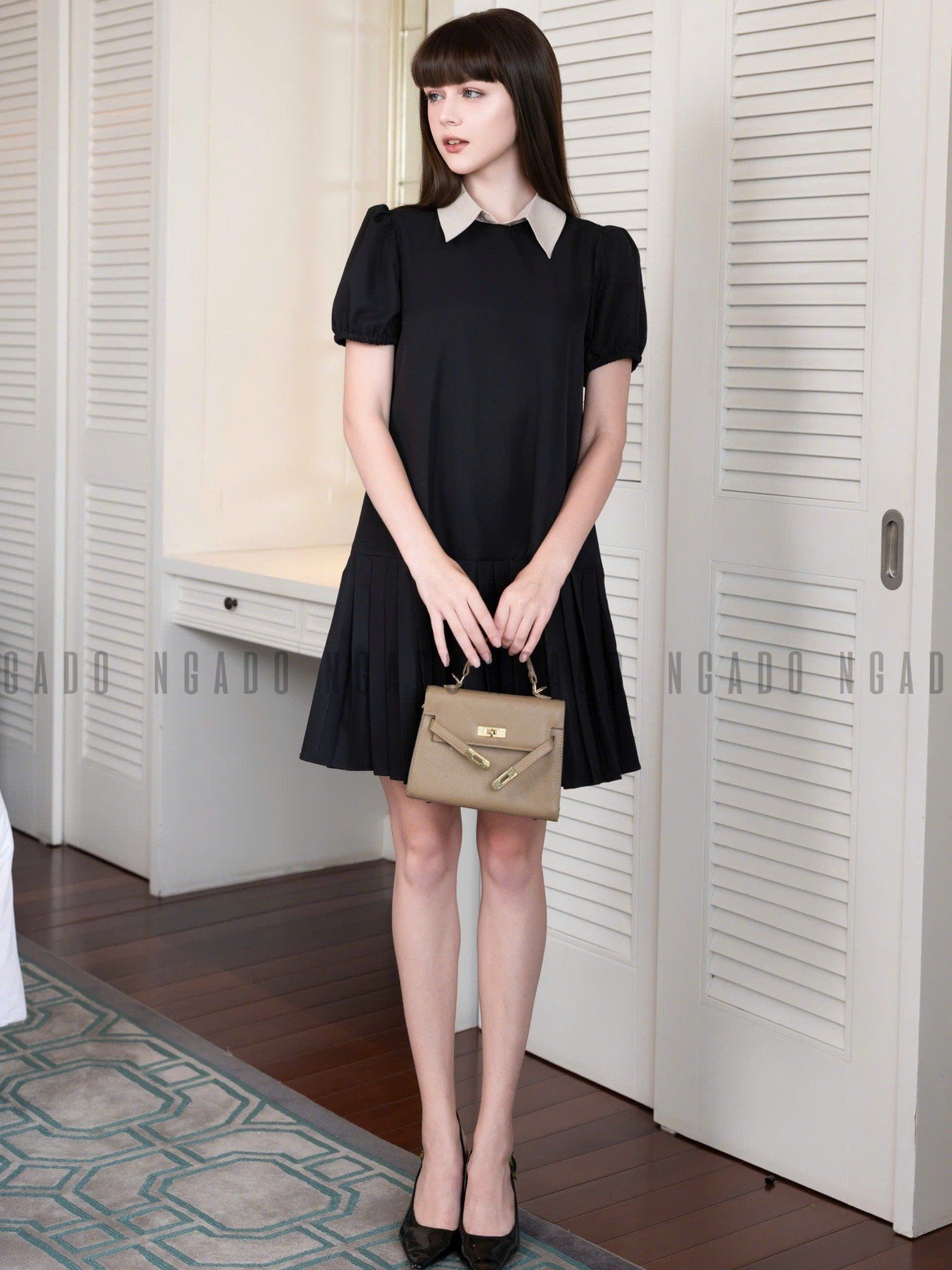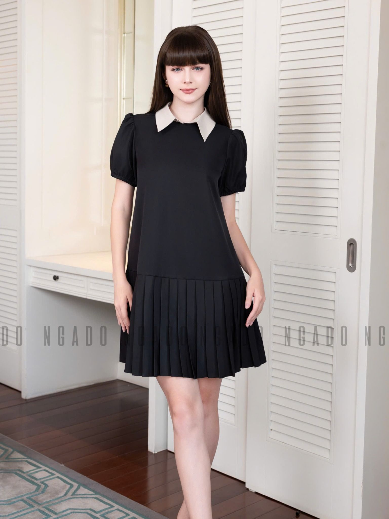 Đầm đen cổ phối kem