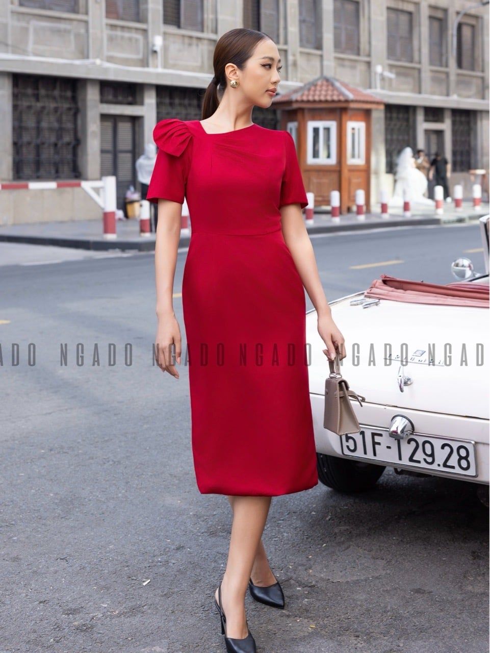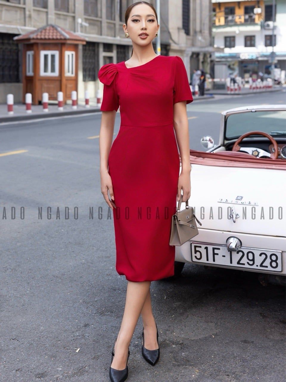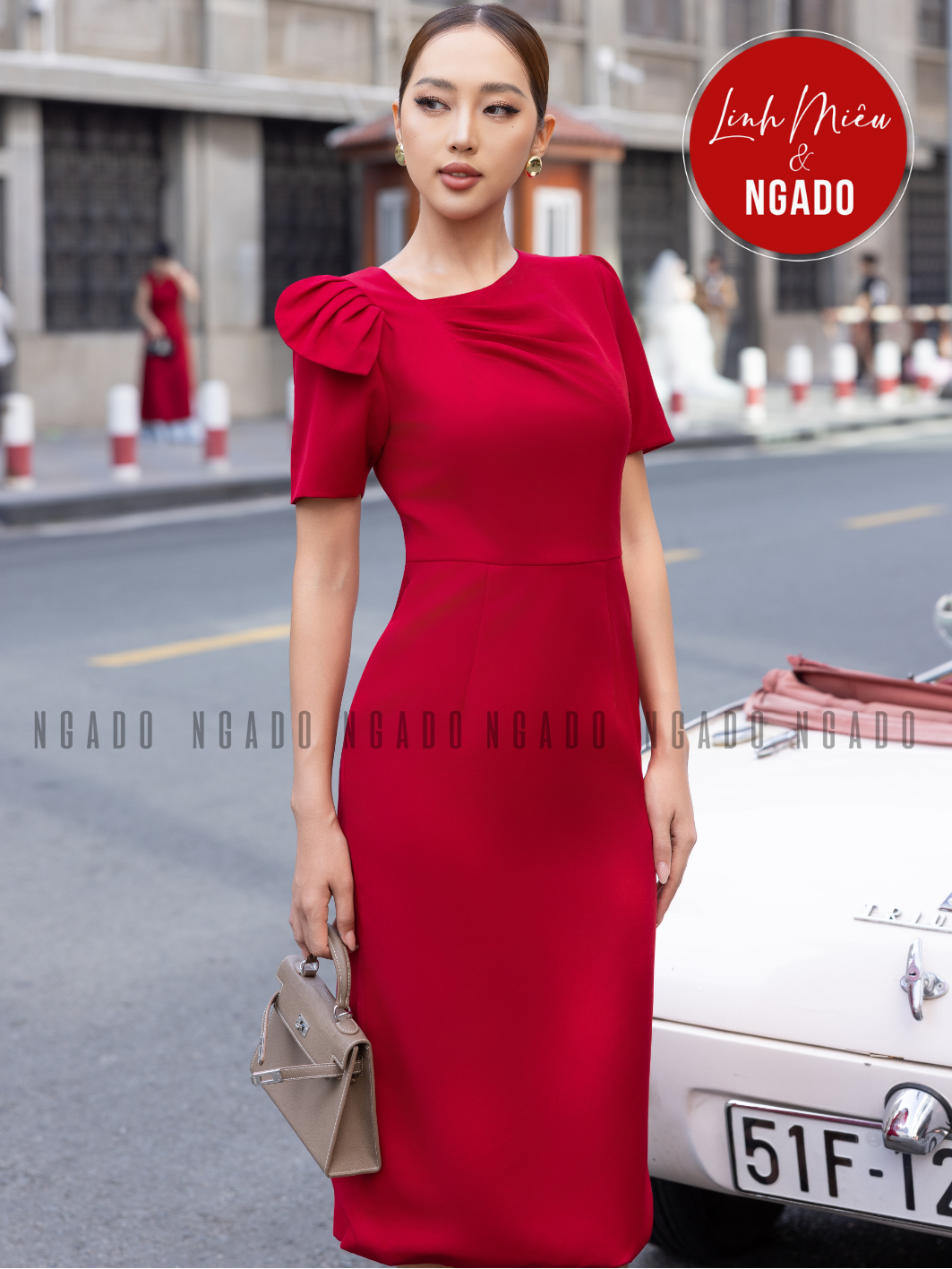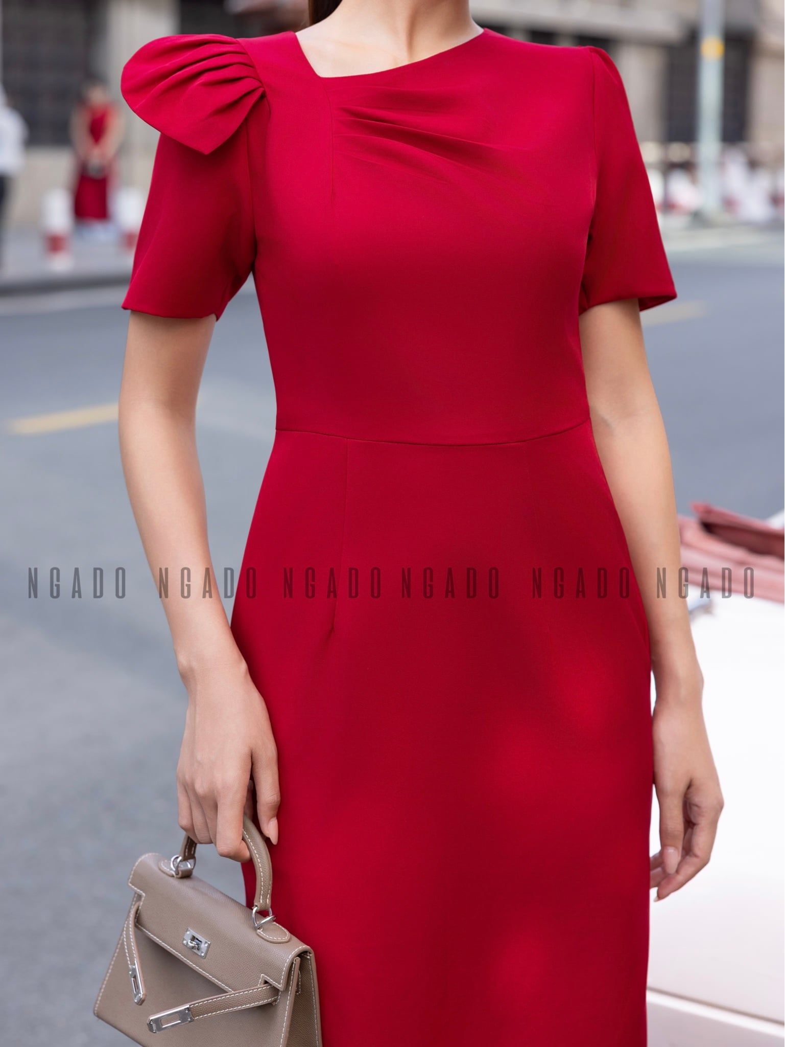 Đầm đỏ bút chì tay phối xếp ly [LM x ND]