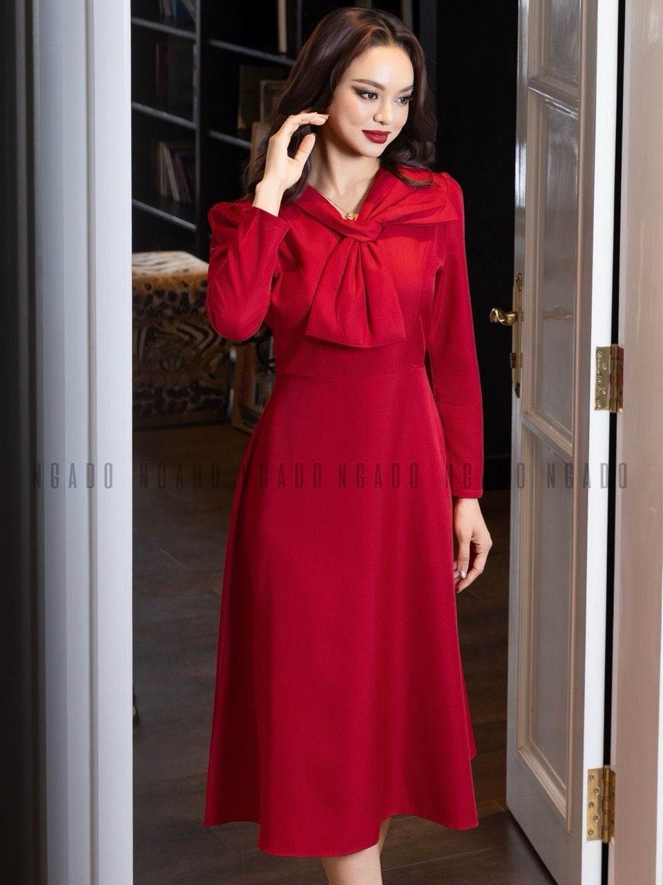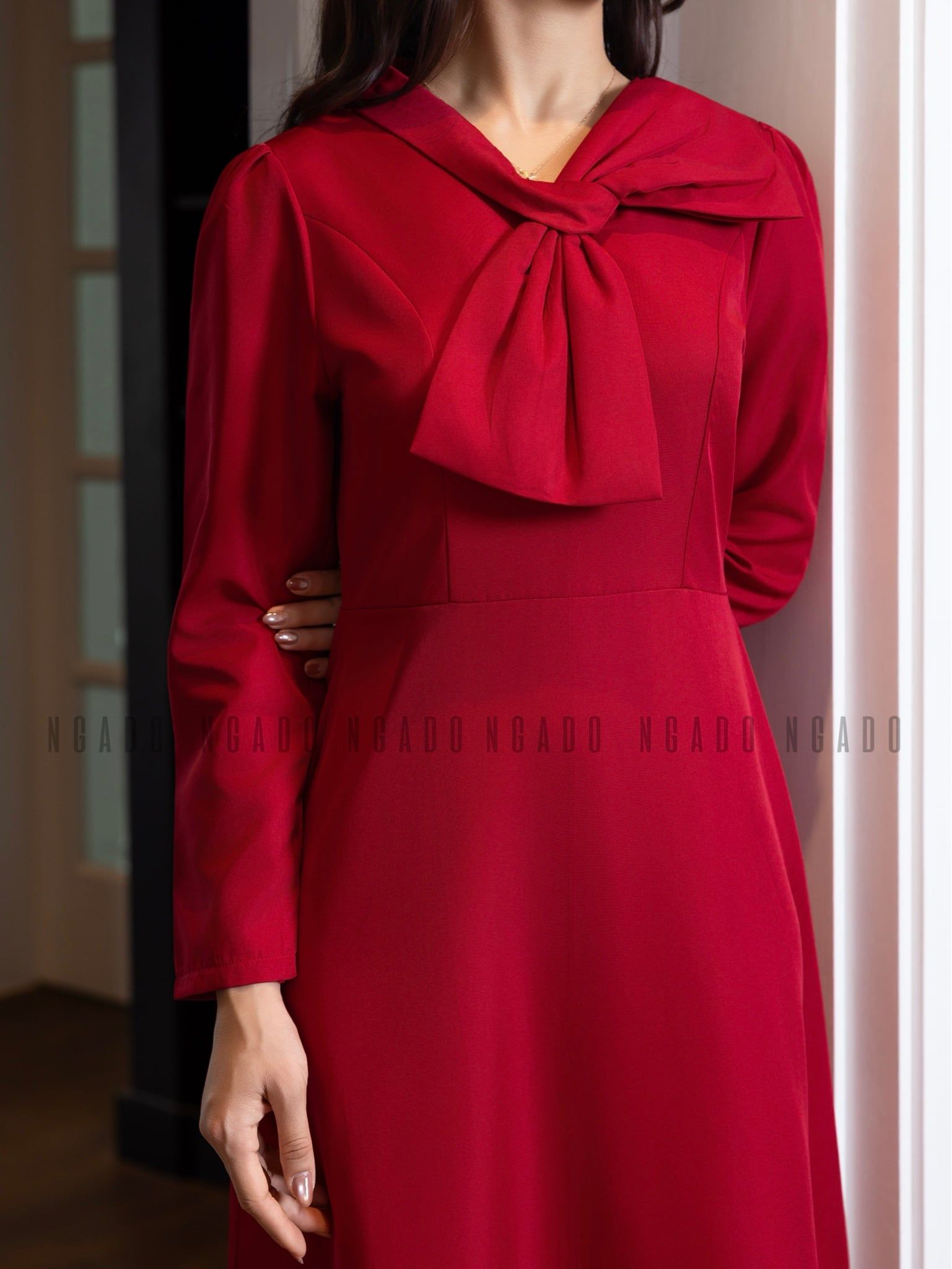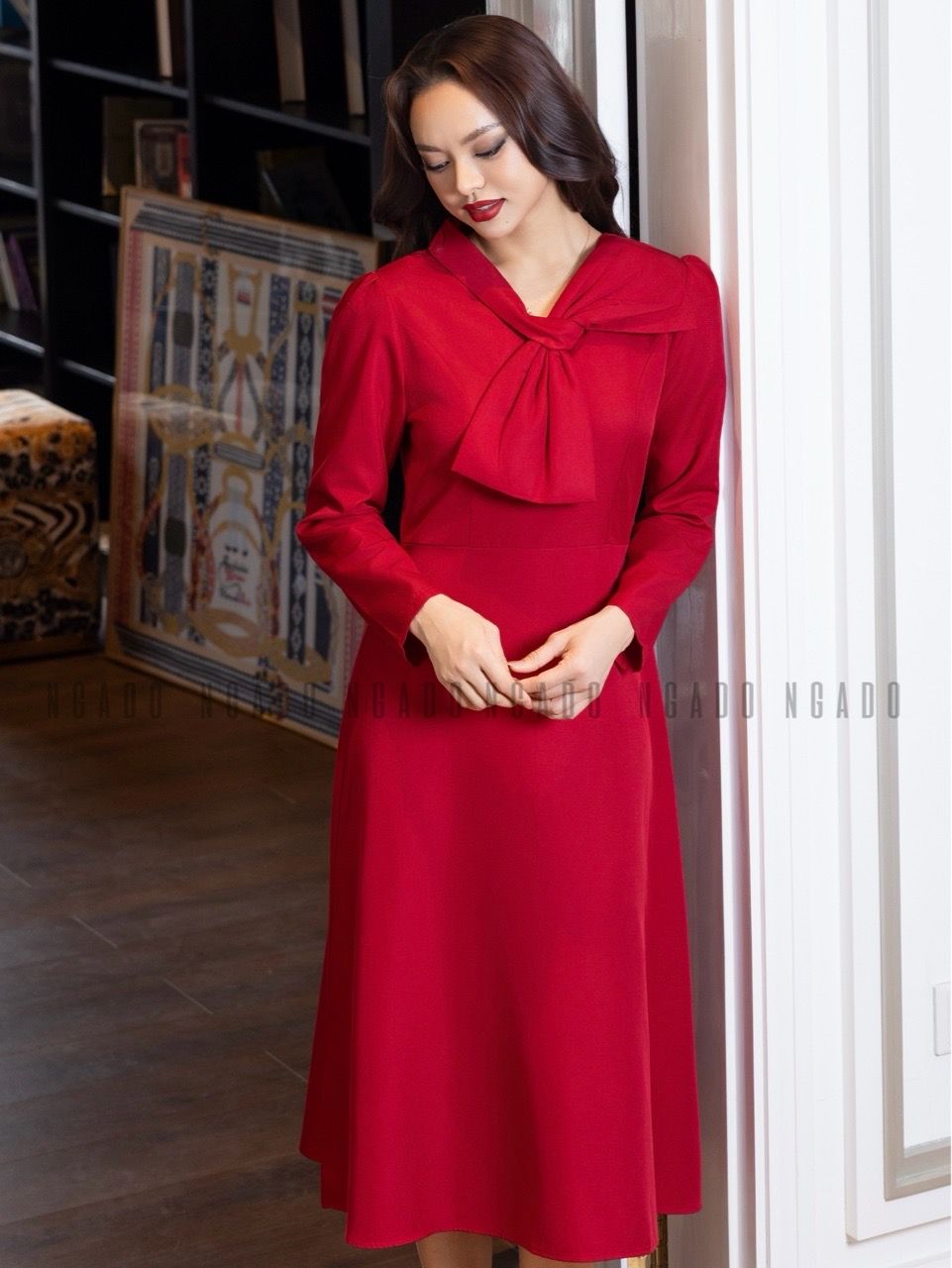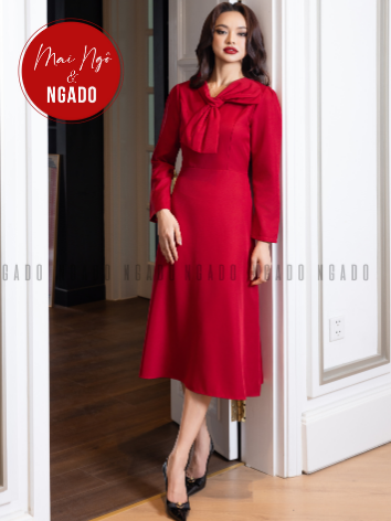 Đầm đỏ cổ phối nơ [MN x ND]