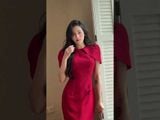 Đầm đỏ cổ tròn