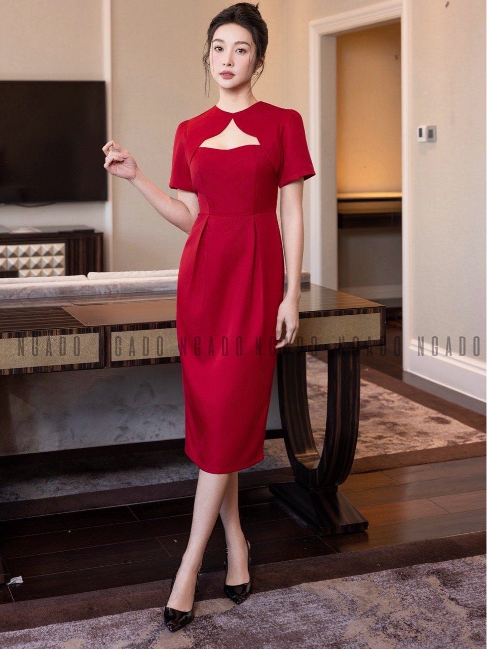 Đầm đỏ cúp ngực