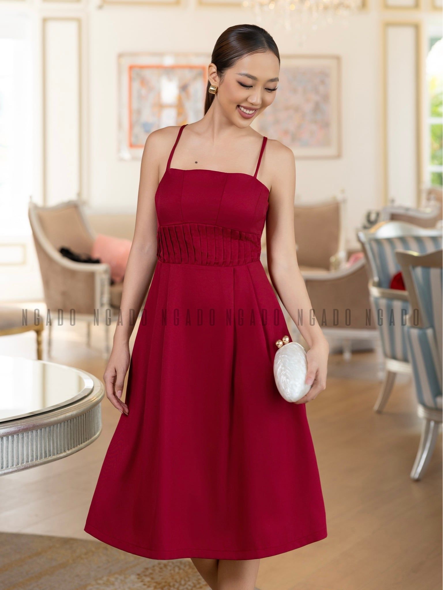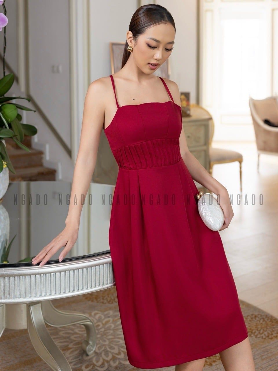 Đầm đỏ hai dây xếp ly ngực [LM x ND]