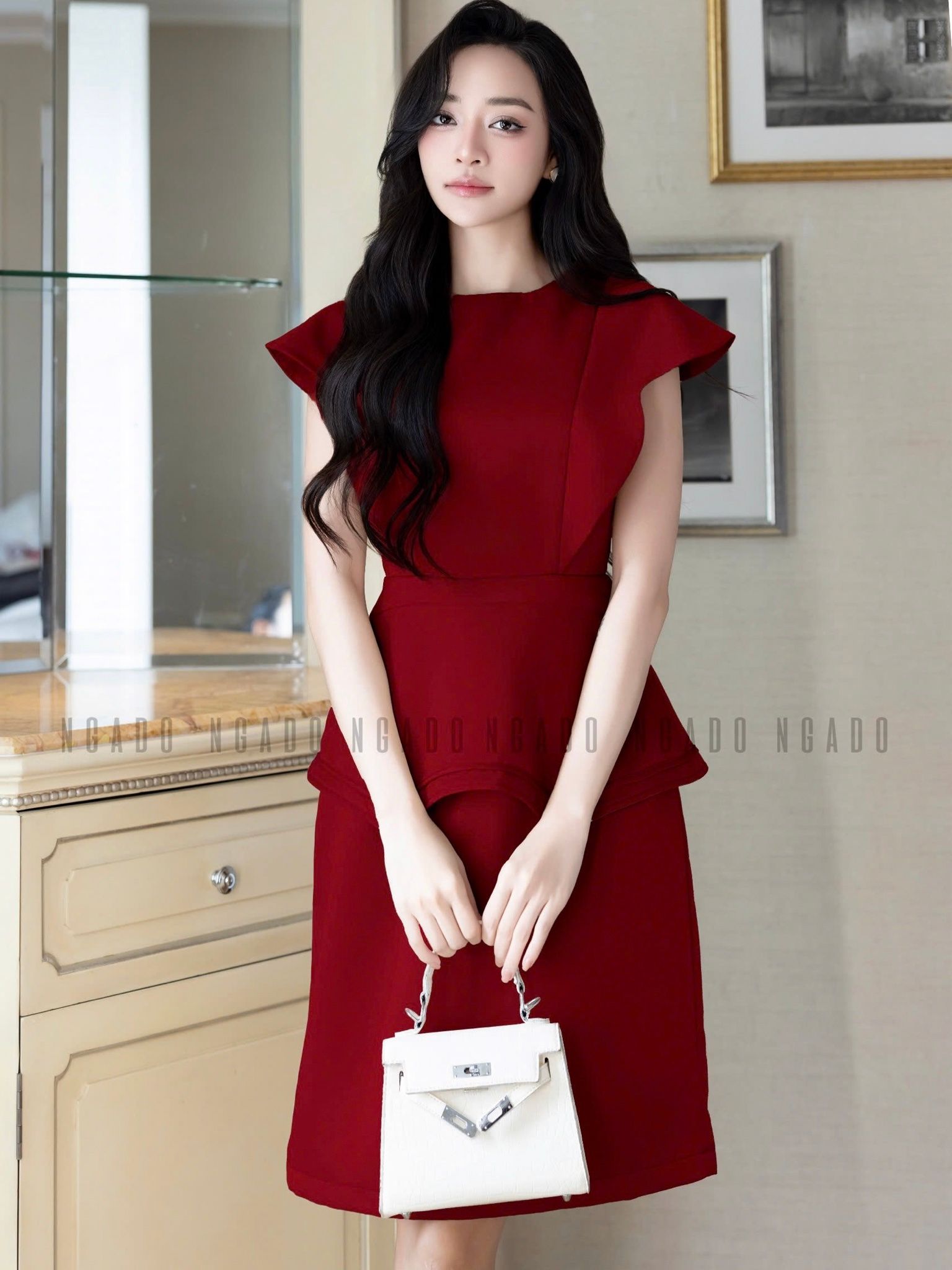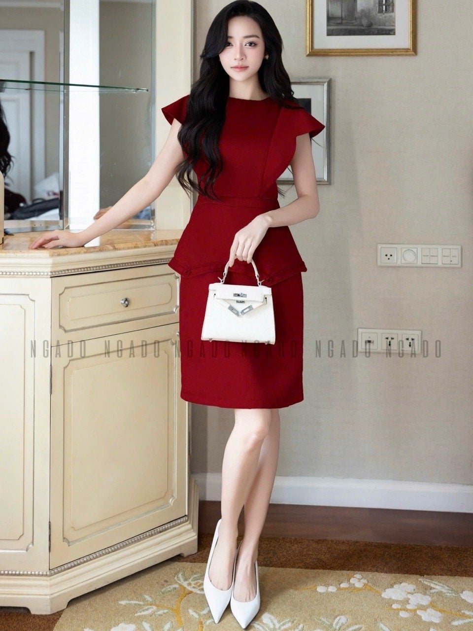Đầm đỏ peplum cánh tiên