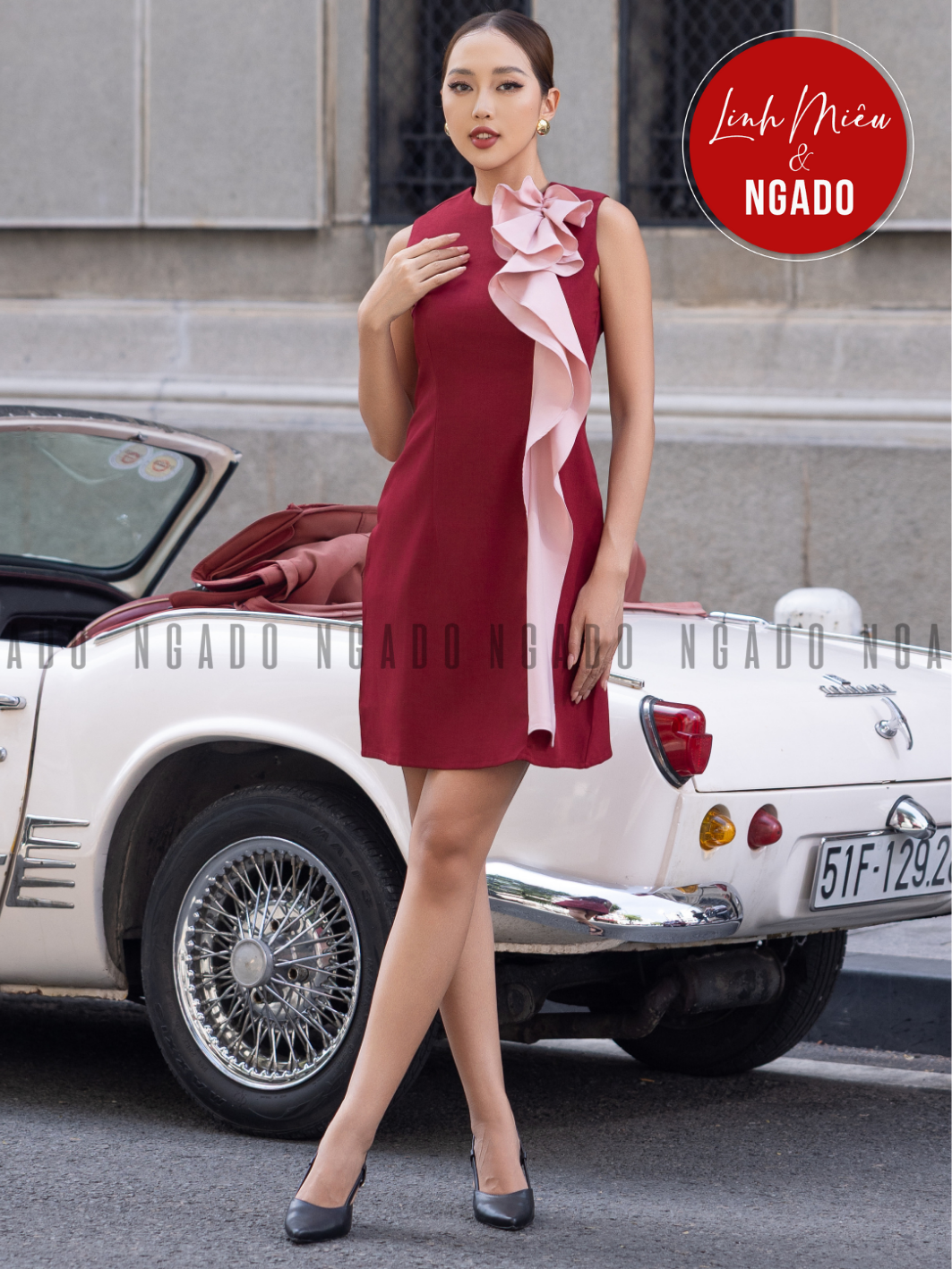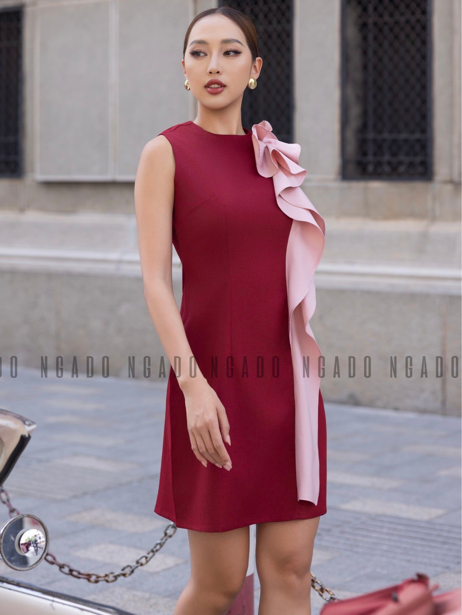 Đầm đỏ phối vạt hồng [LM x ND]