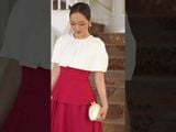 Đầm đỏ phối vạt trắng