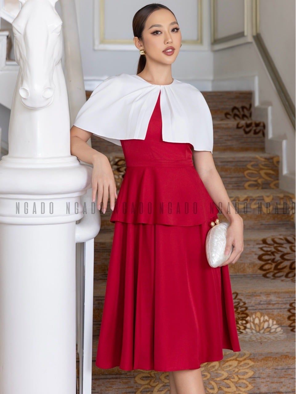 Đầm đỏ phối vạt trắng [LM x ND]