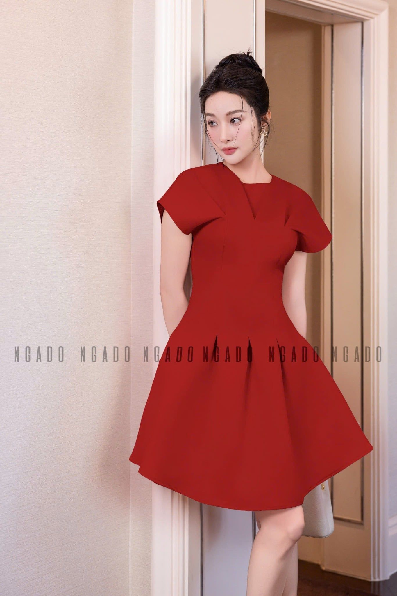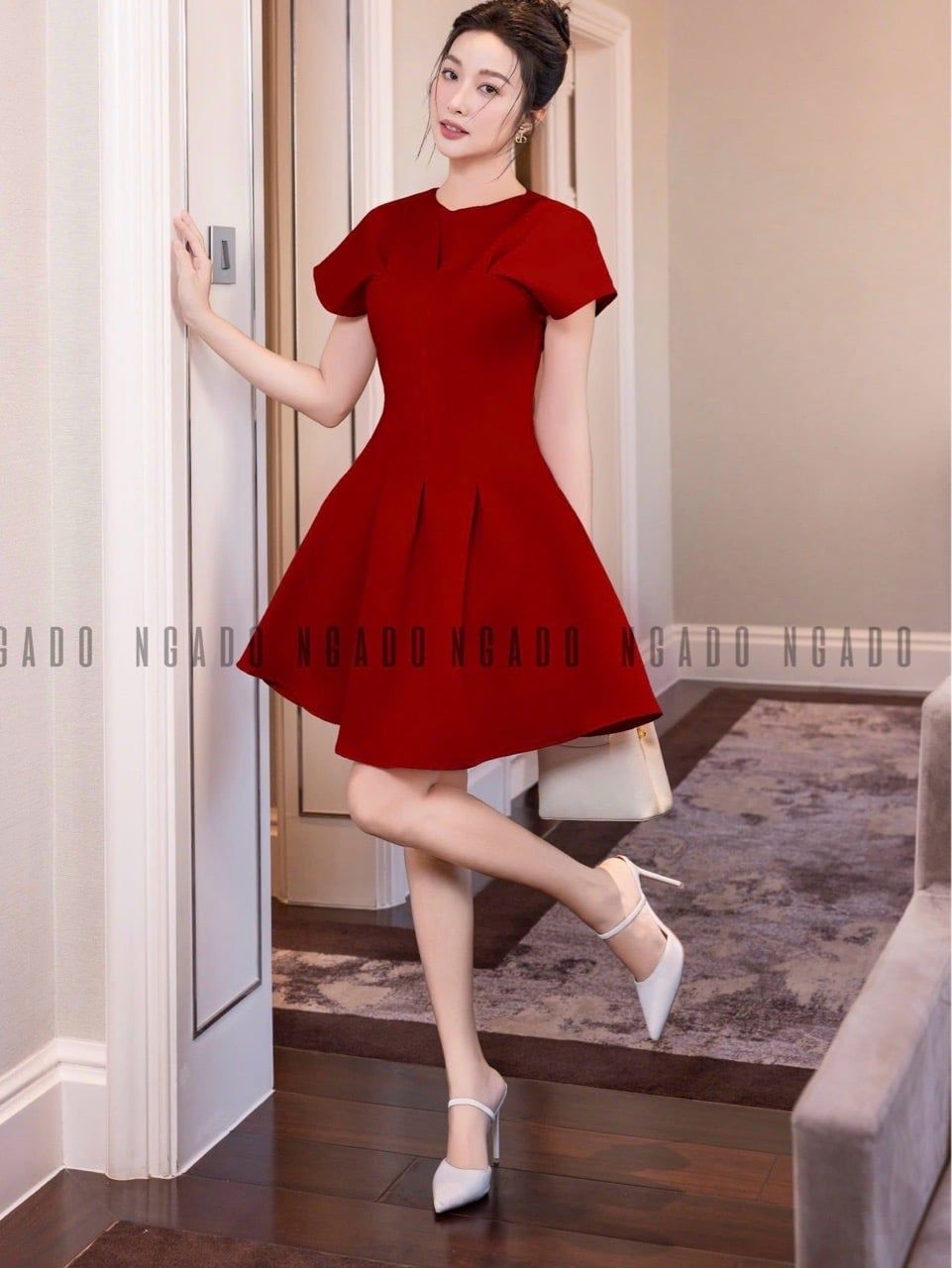 Đầm đỏ tay dơi xếp ly