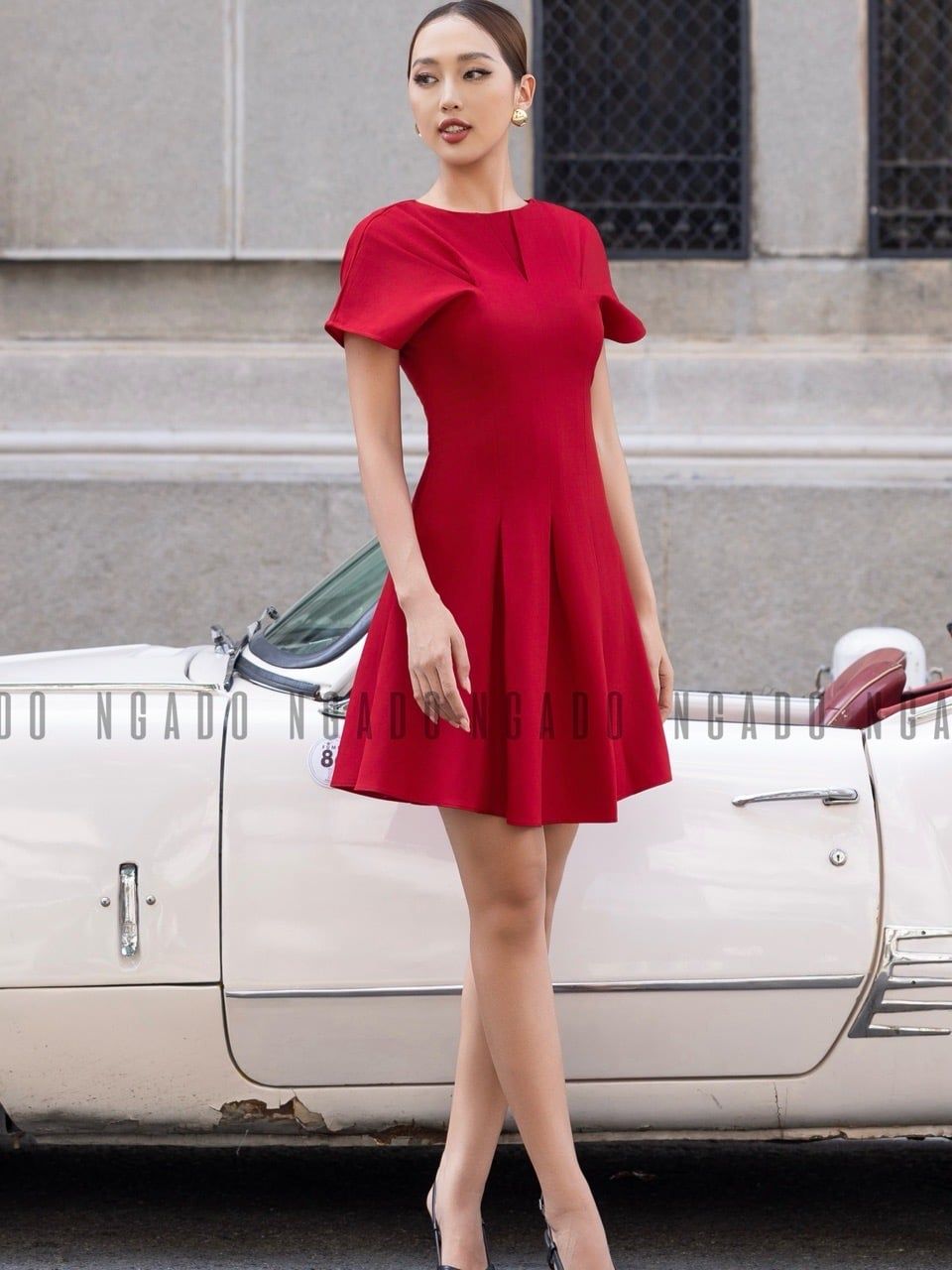 Đầm đỏ tay dơi xếp ly [LM x ND]
