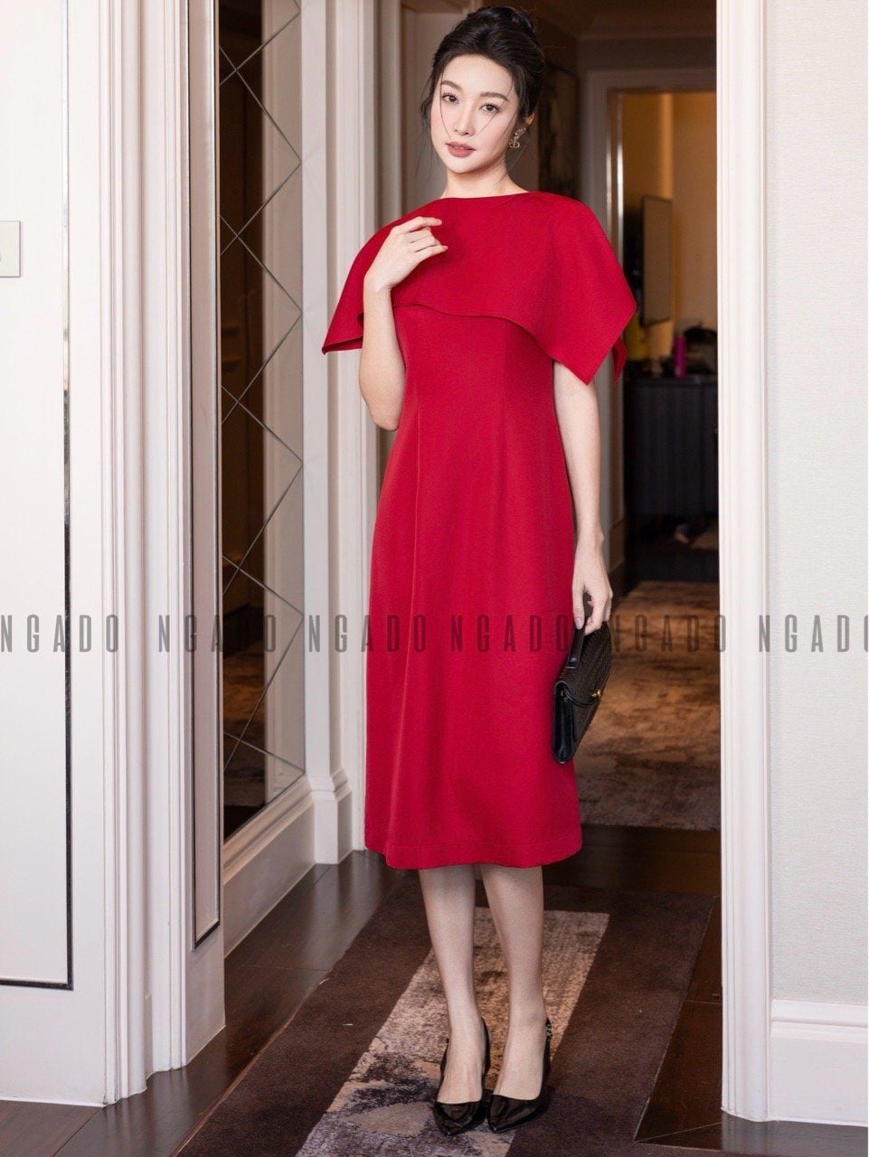 Đầm đỏ vạt xéo