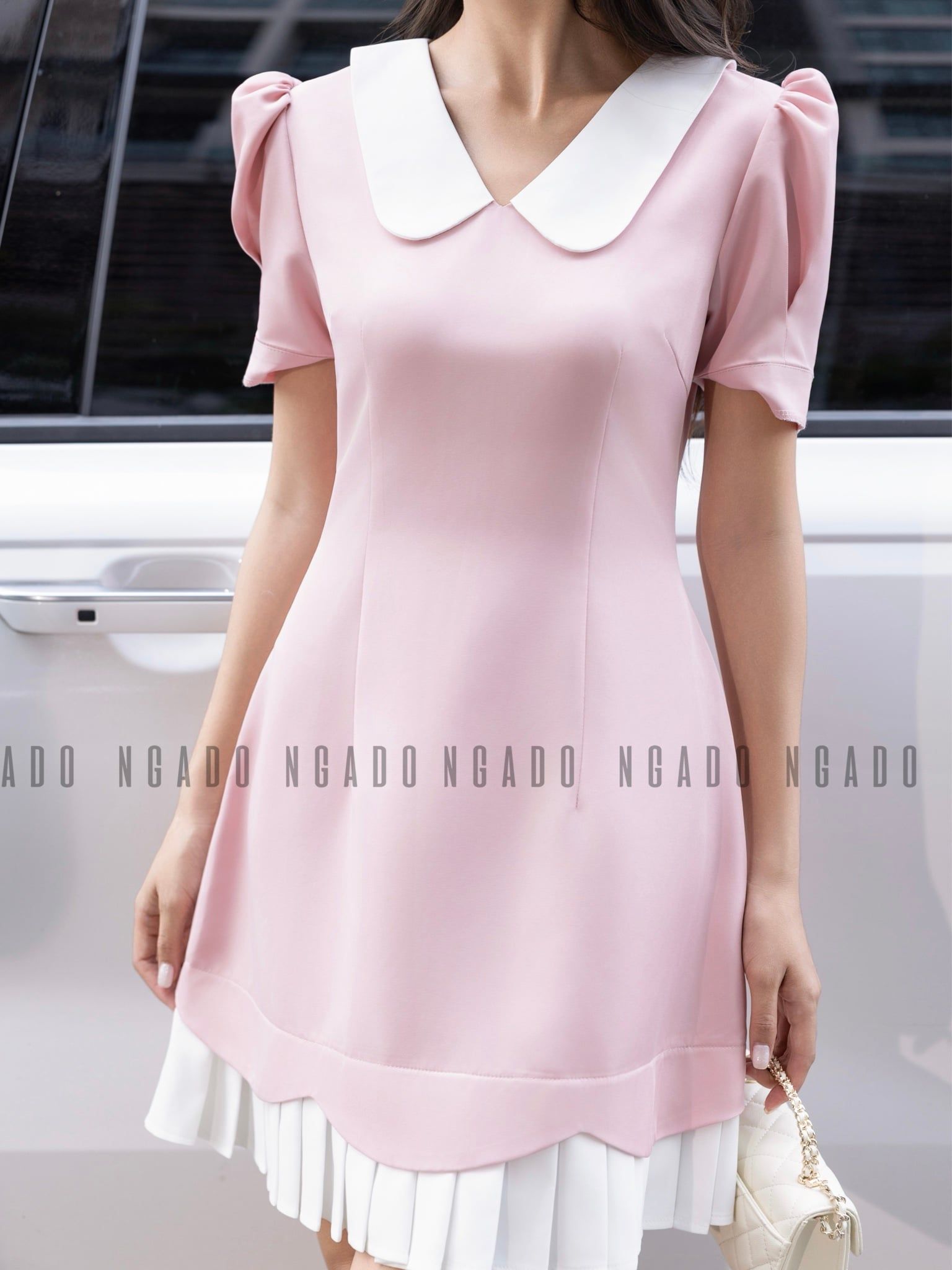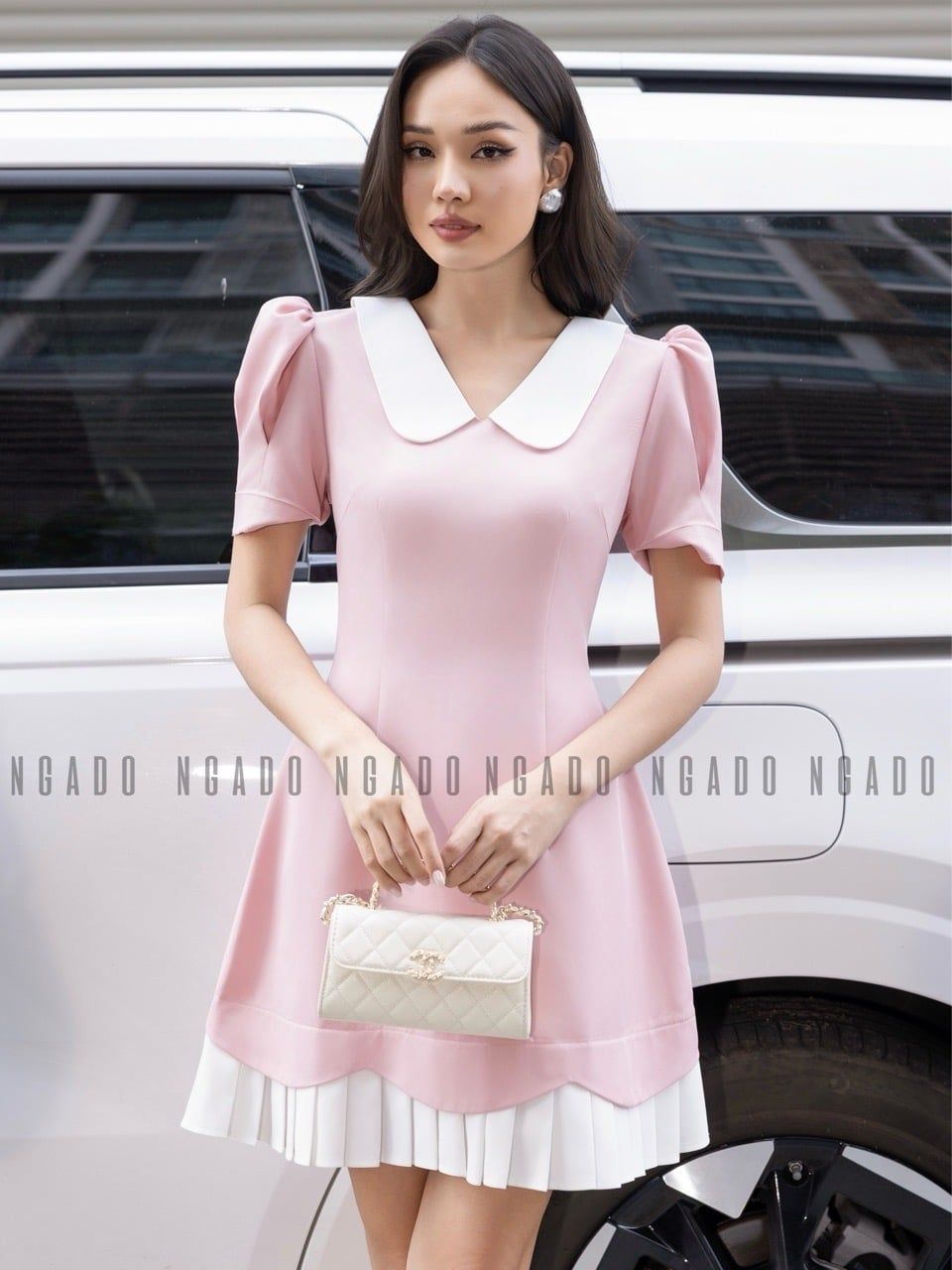 Đầm hồng cổ sen phối xếp ly [TÂM x ND]