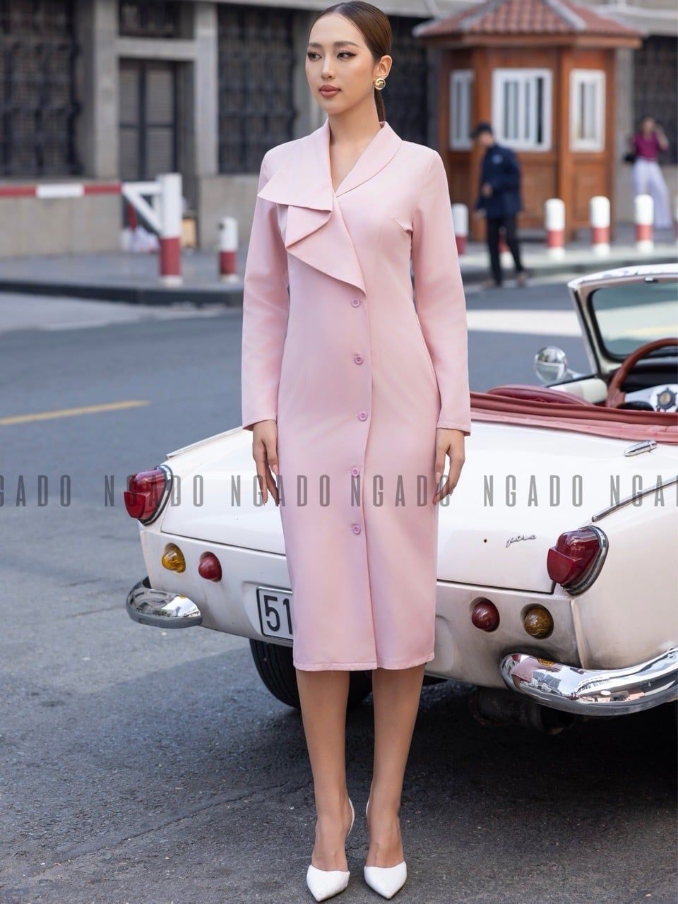 Đầm hồng cổ xếp ly [LM x ND]