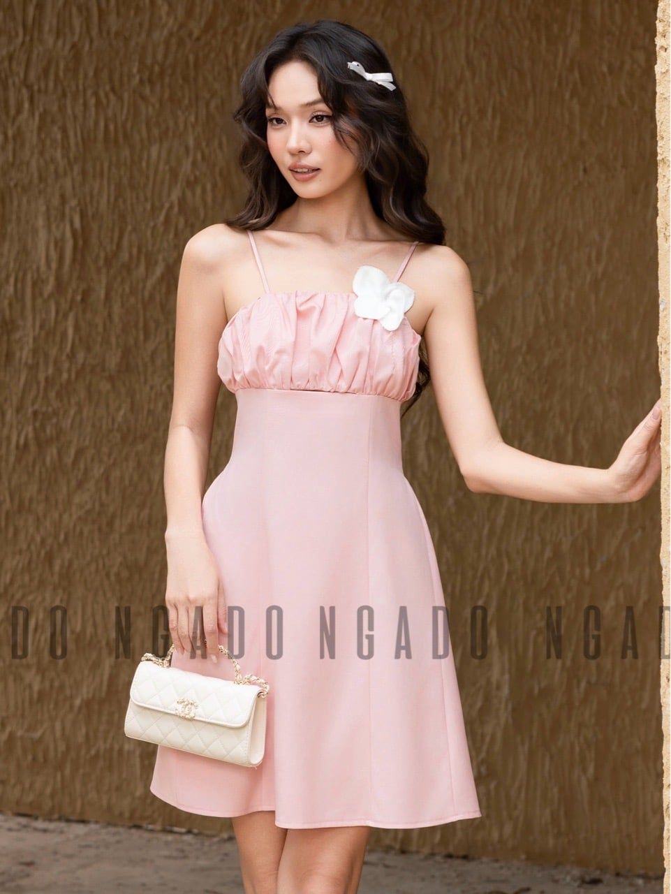 Đầm hồng cúp ngực nhún phối hoa [TÂM x ND]
