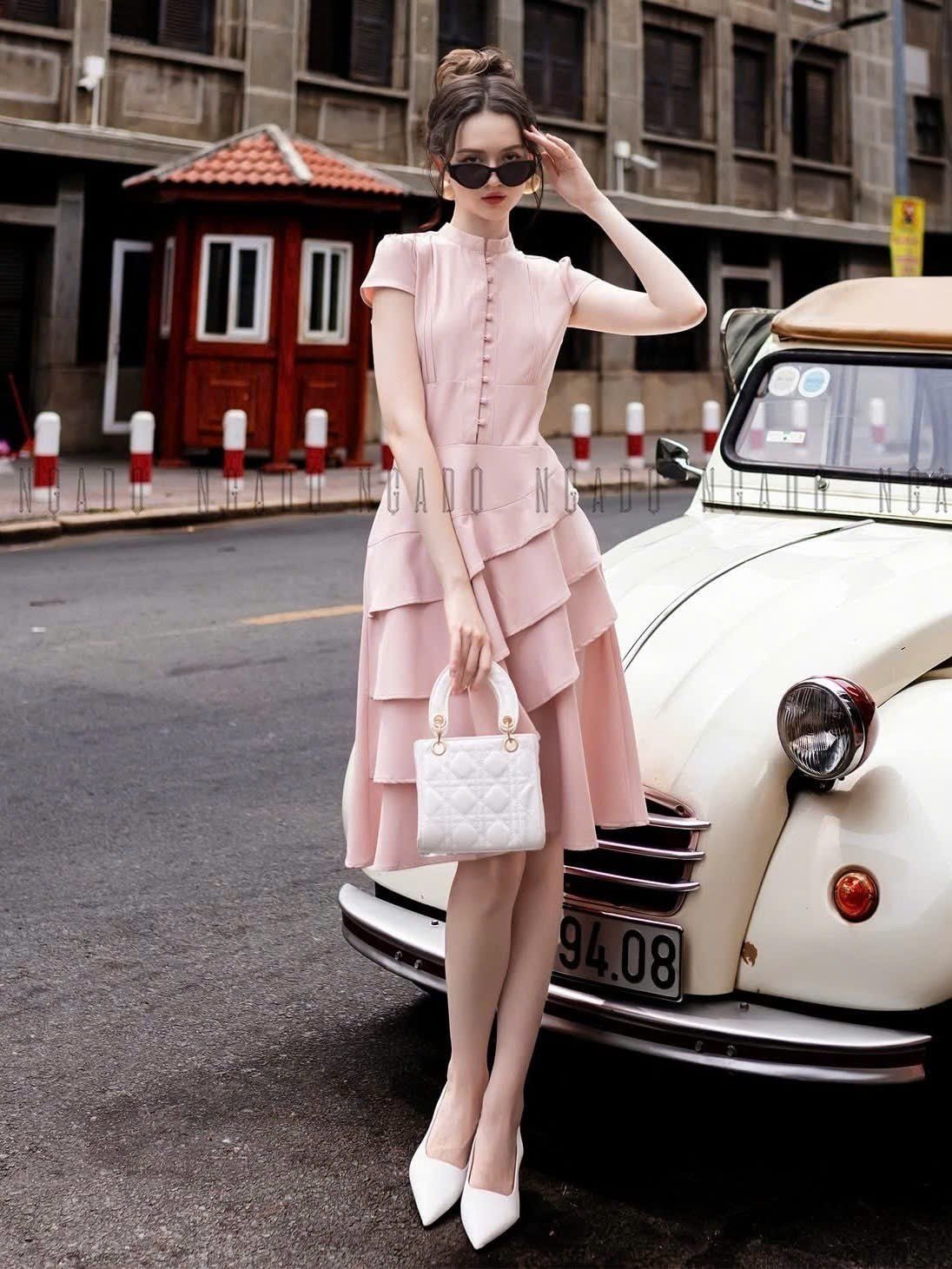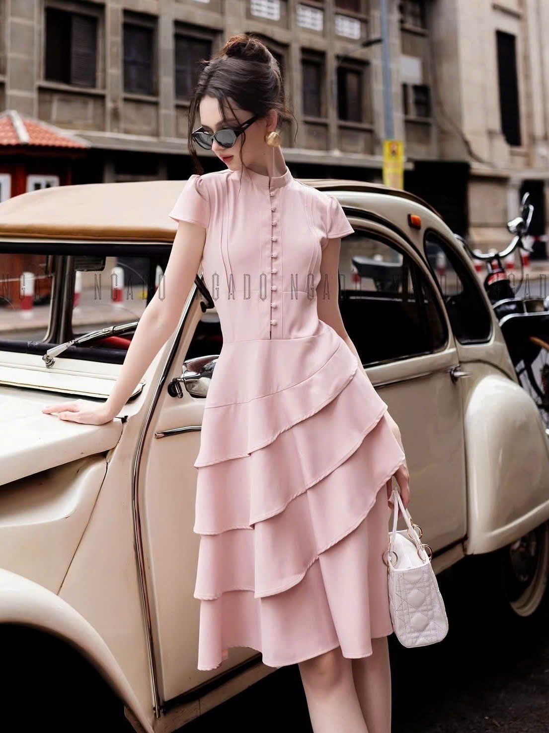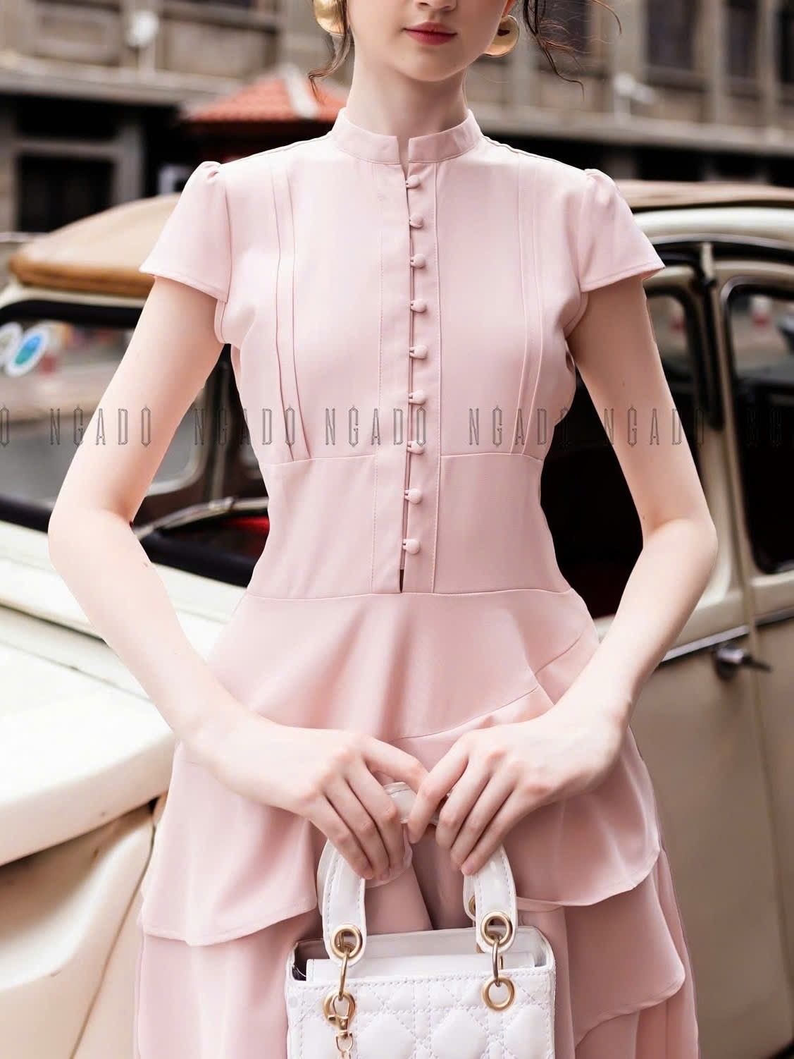 Đầm hồng ngắn tay