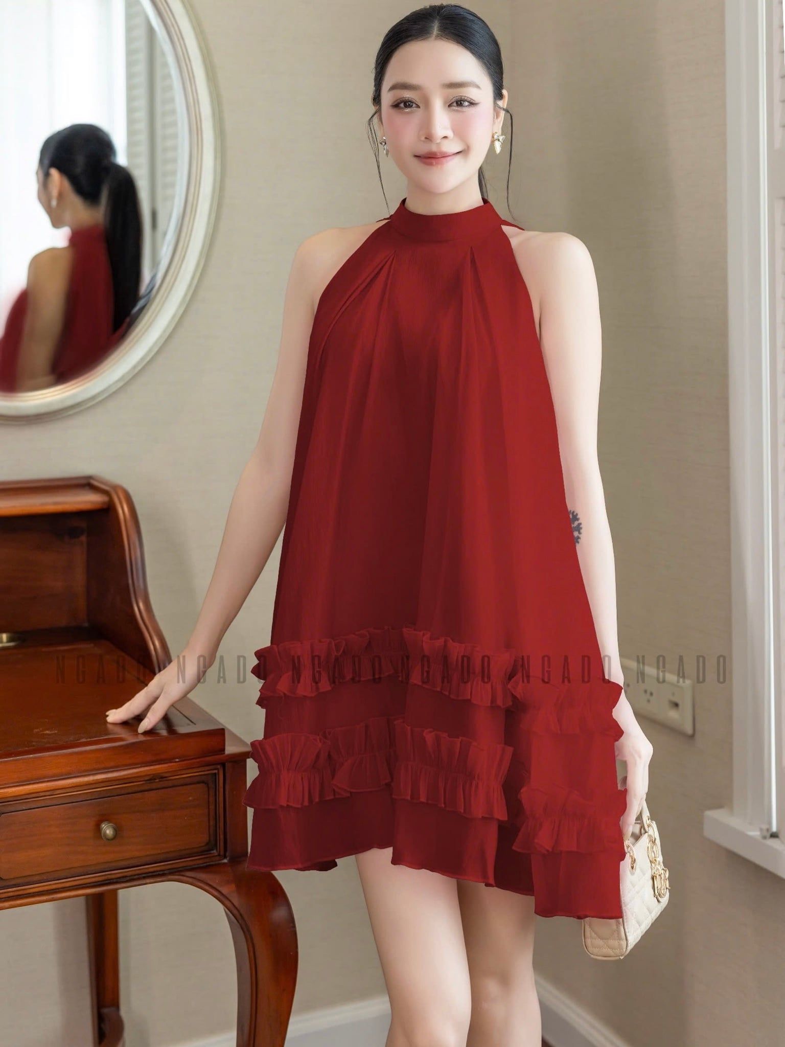 Đầm yếm đỏ phối bèo