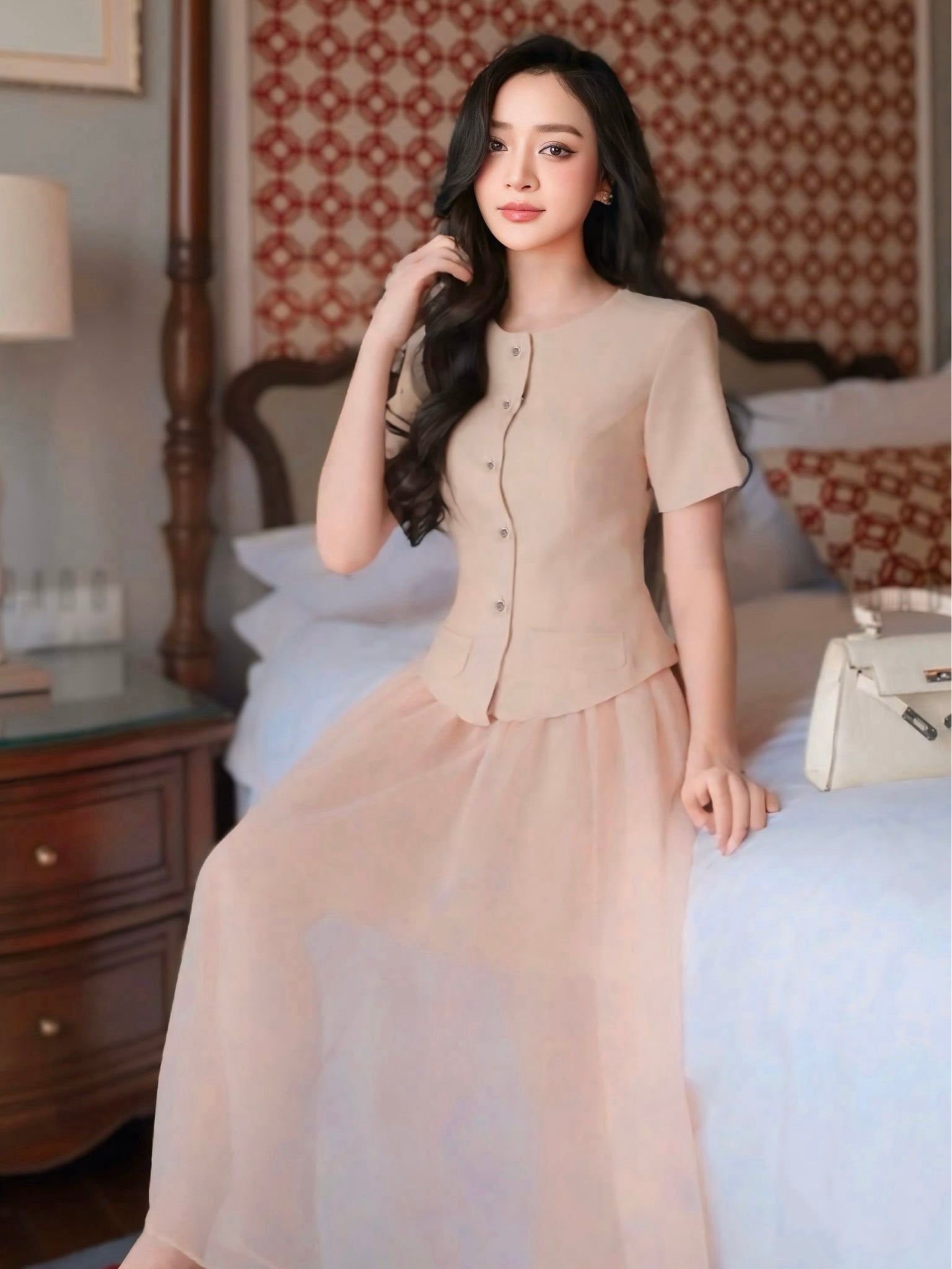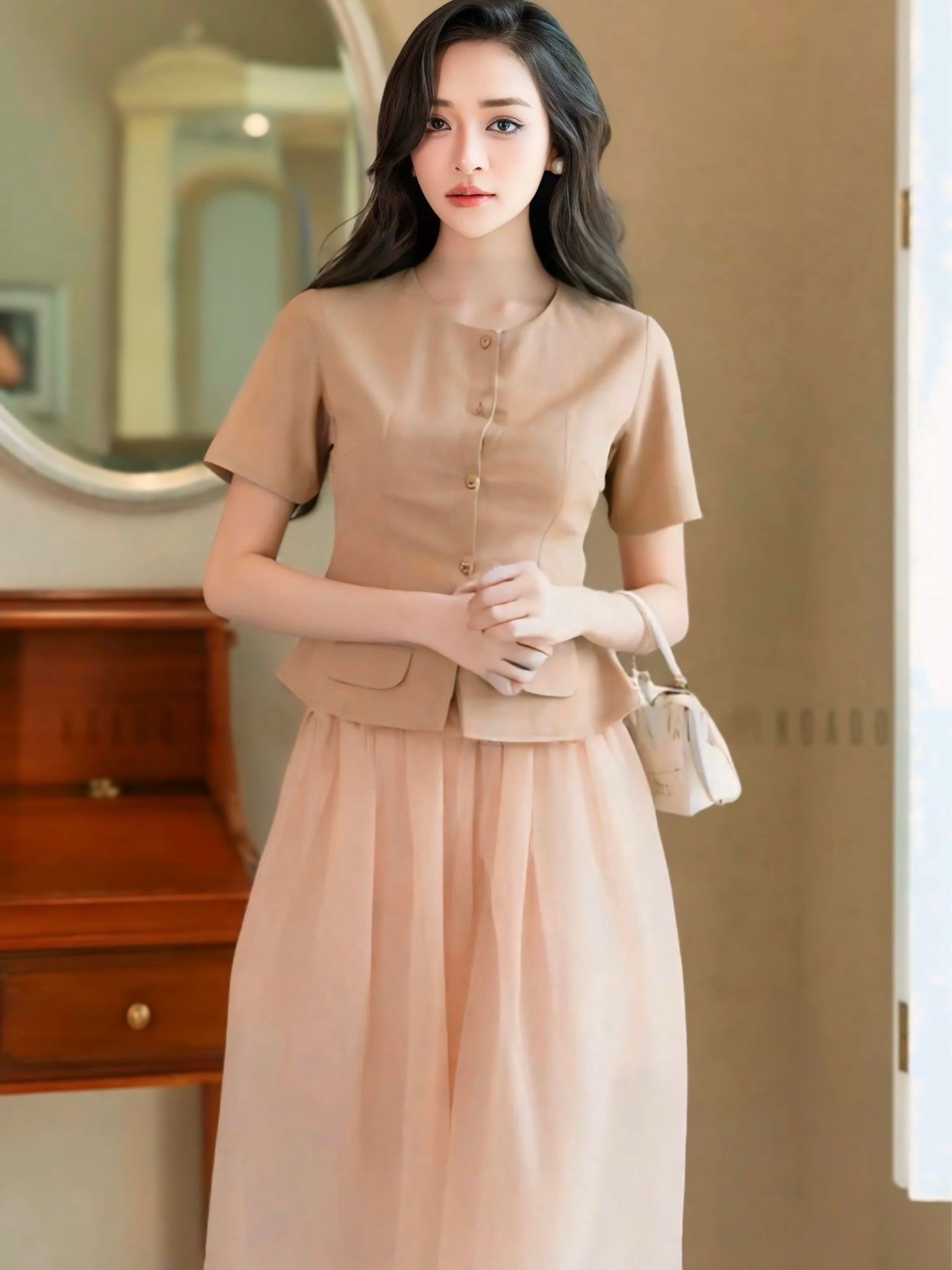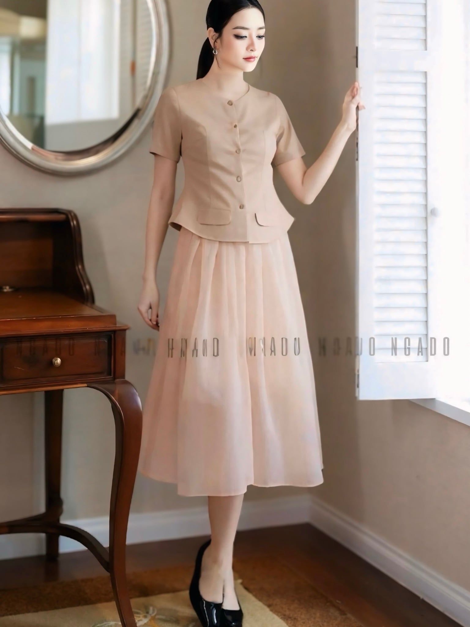 Set Ôo nâu chân vÔy voan tƔ
