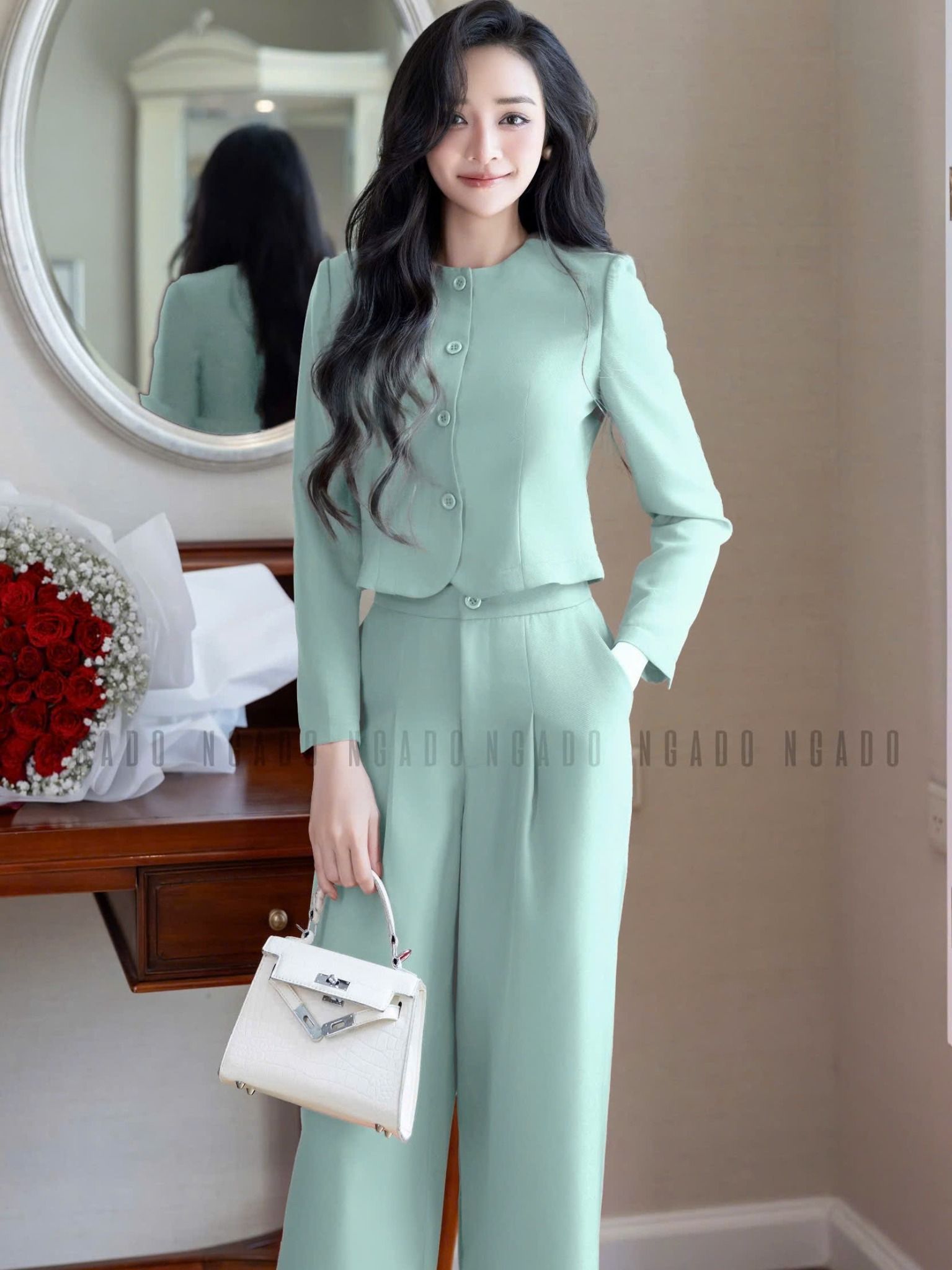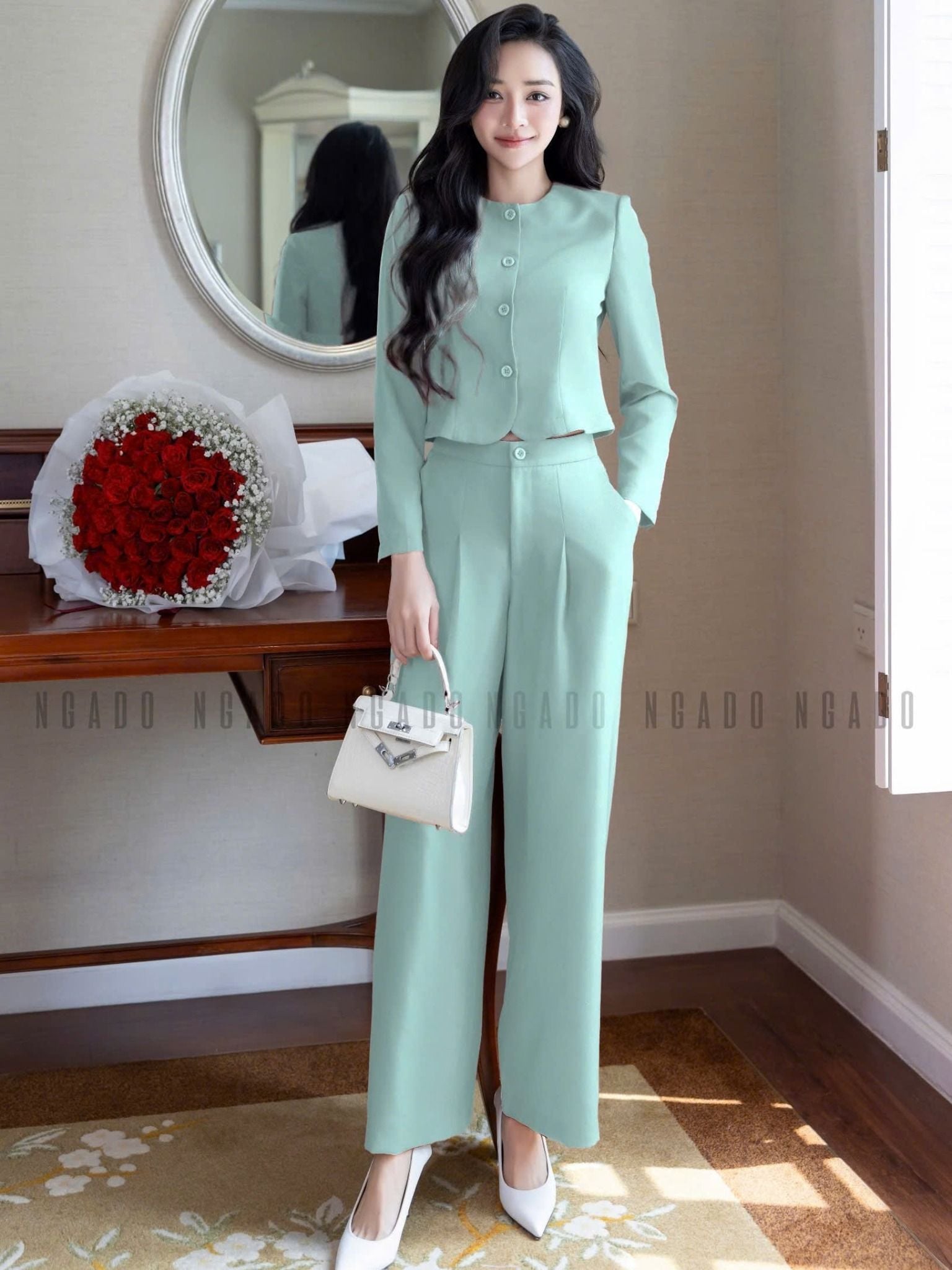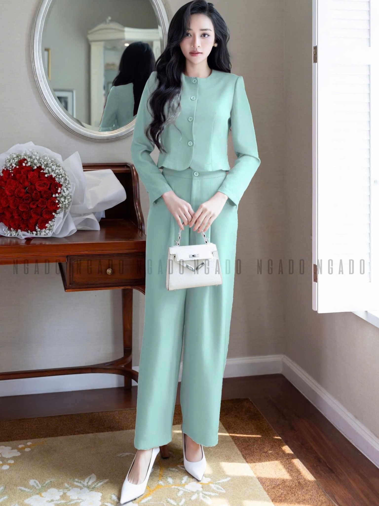 Set áo quần xanh mint cổ tròn