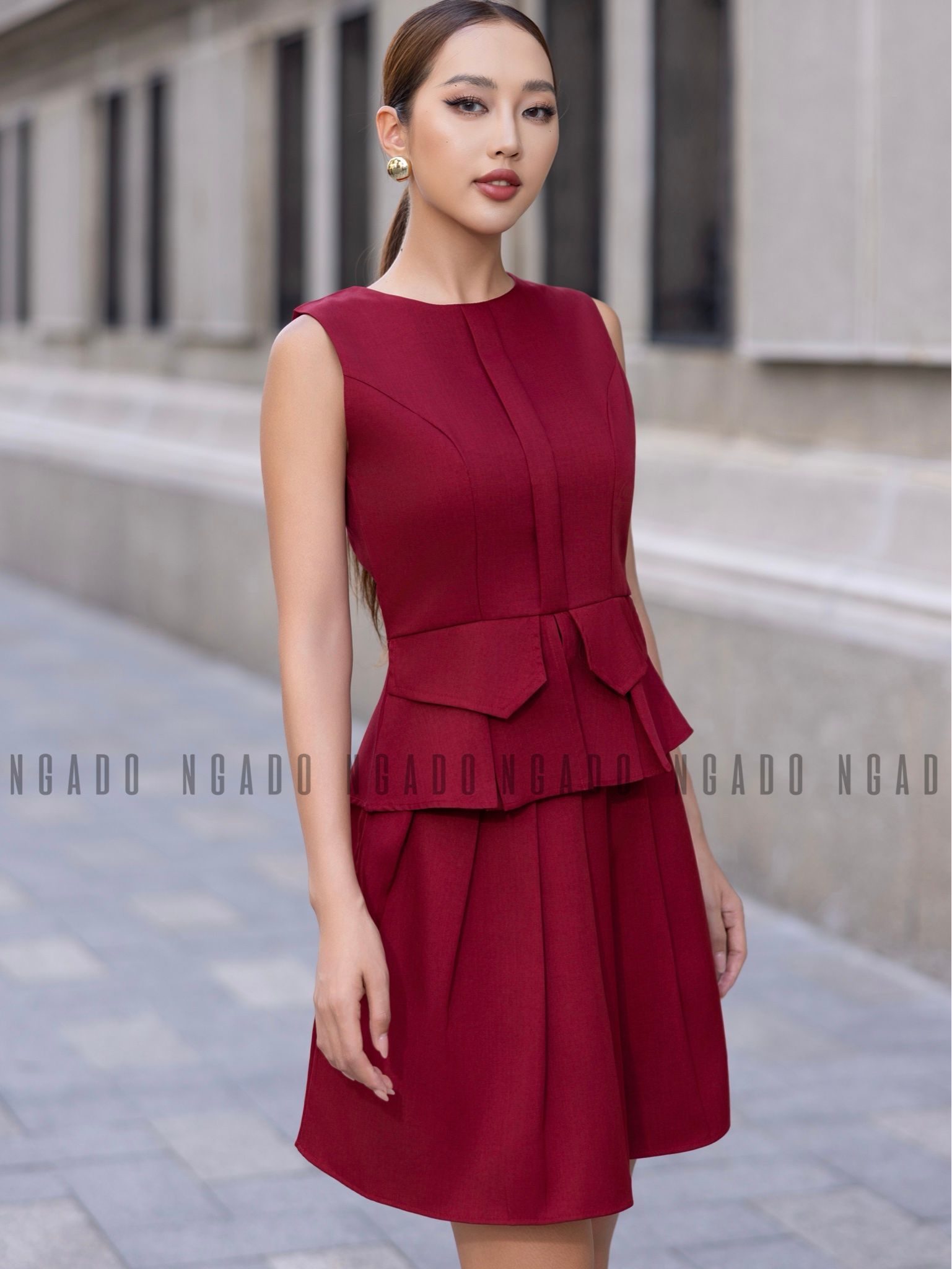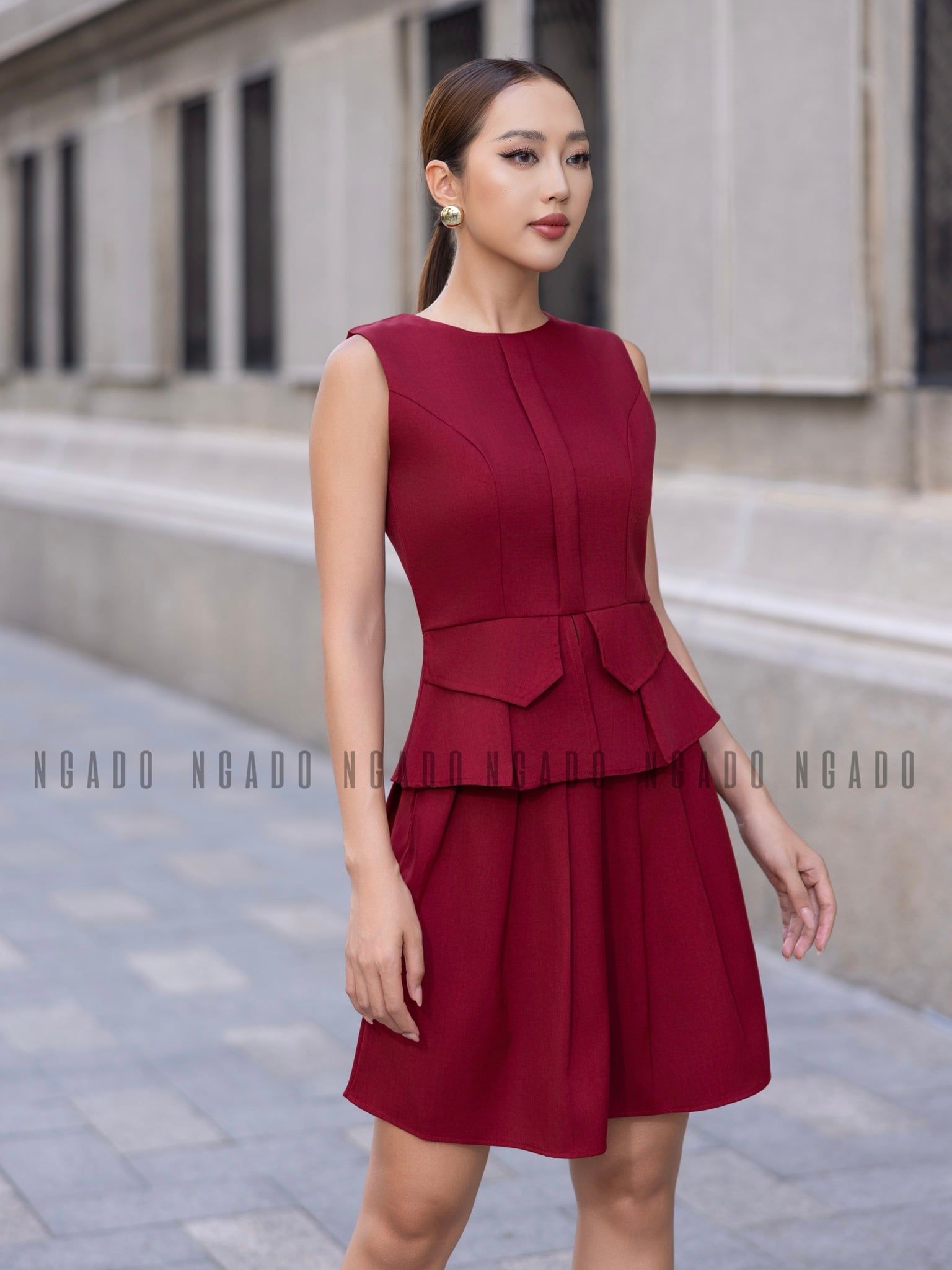 Set áo sát nách chân váy đỏ xếp ly [LM x ND]
