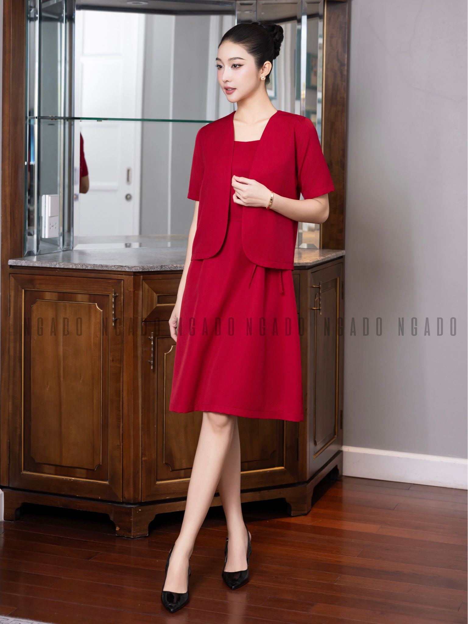 Set áo váy đỏ hai dây