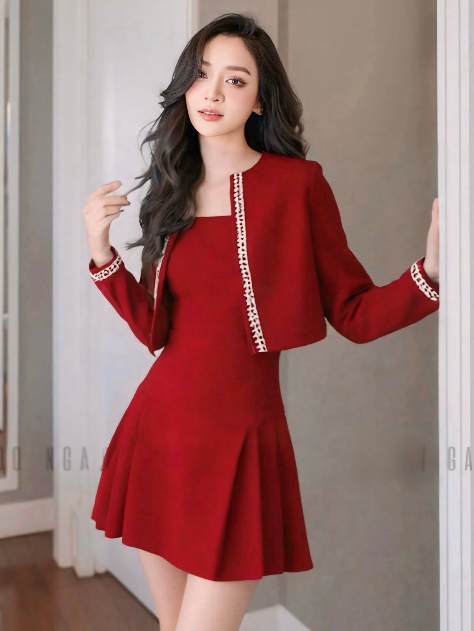 Set áo váy đỏ tay dài [GIANG x ND]