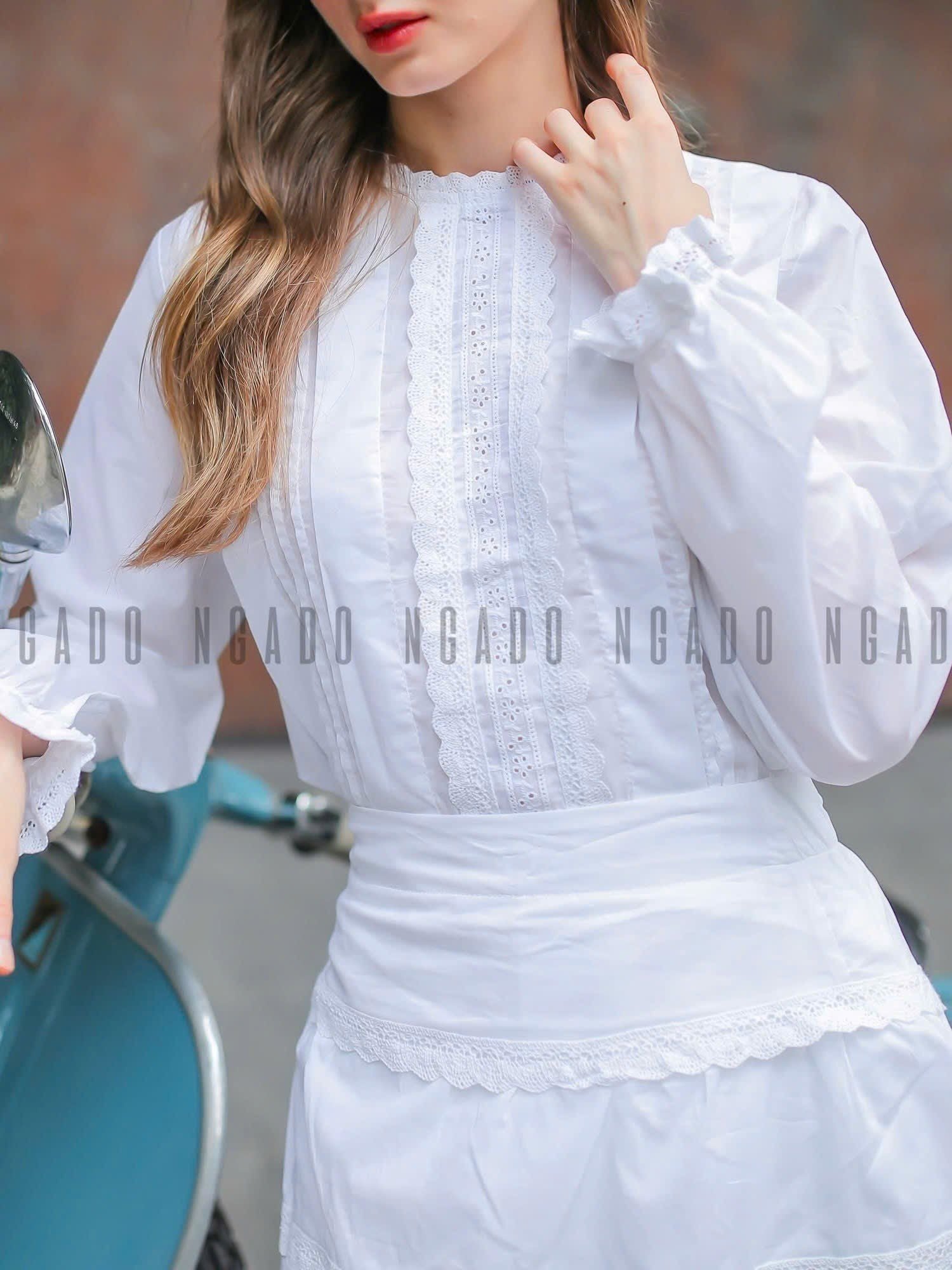 Set áo váy trắng phối ren